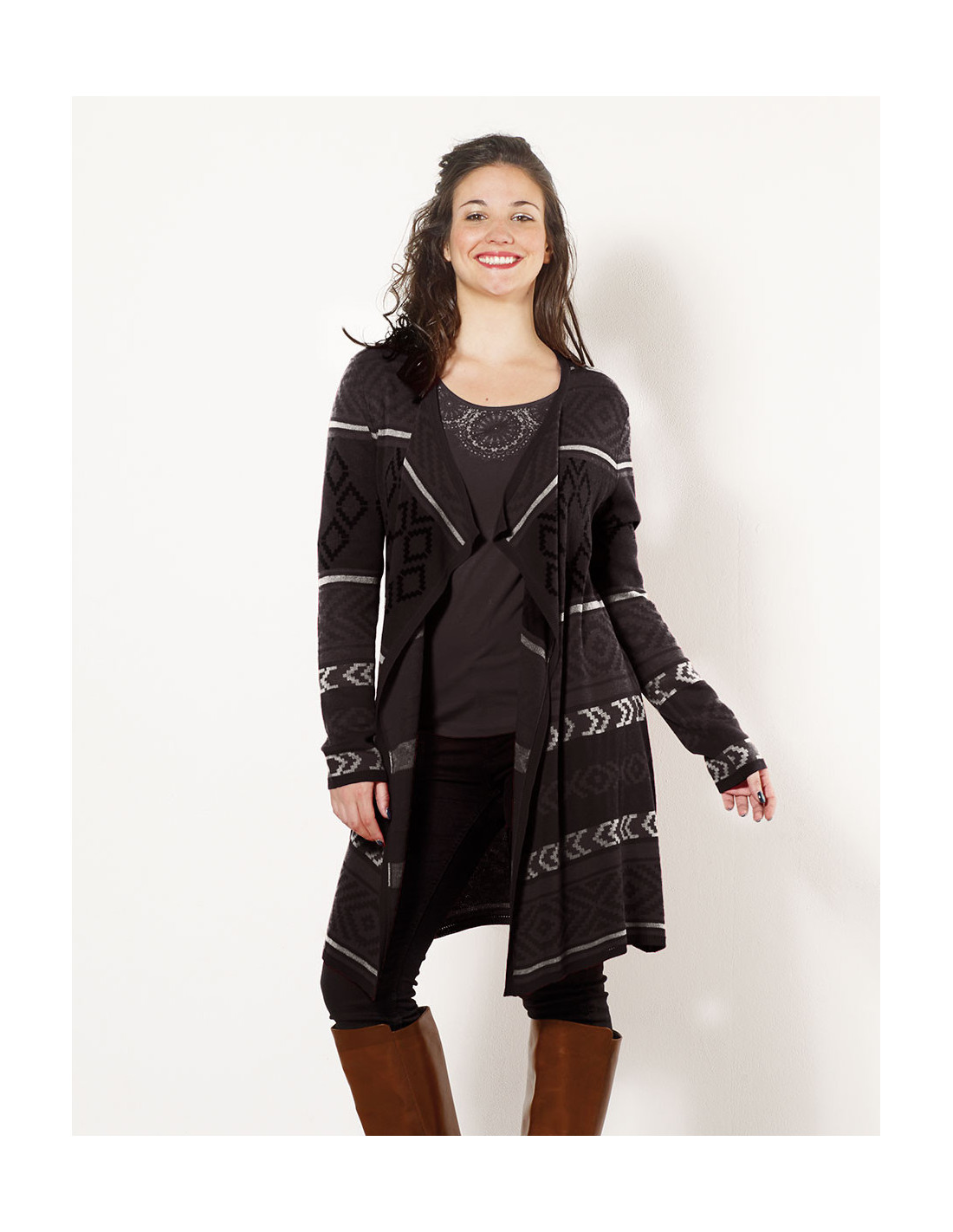This mid-length jacket with ethnic motifs is open for a fluid and comfortable fall. Length S: 84cm - XXL: 88,5cm.