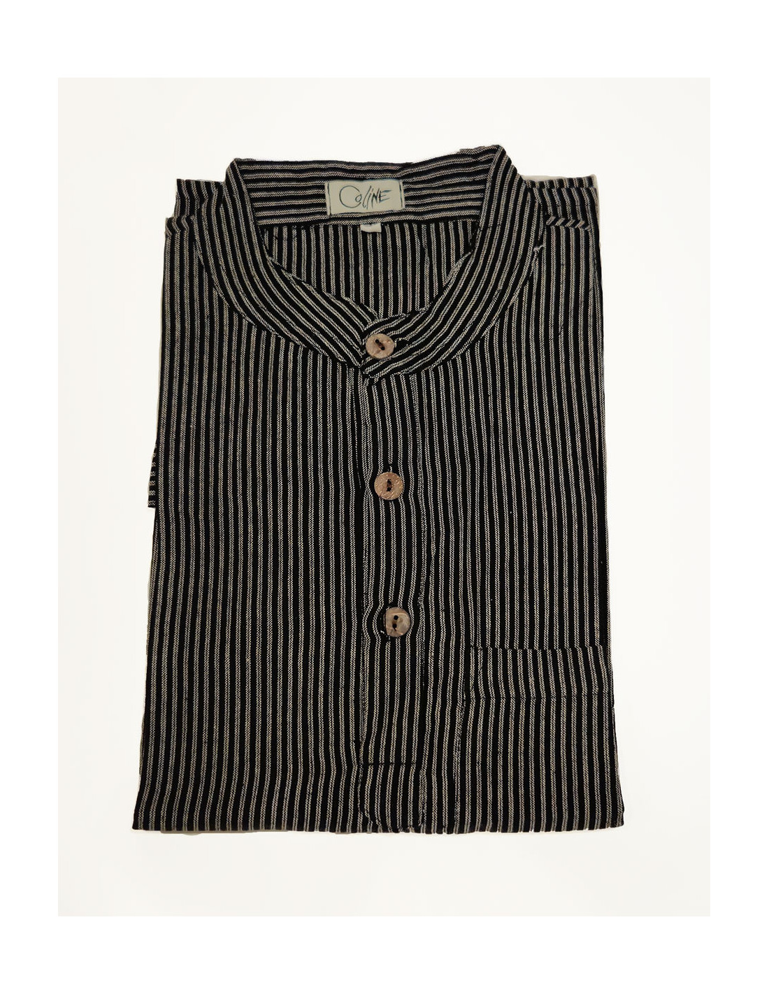 Men's shirt mao collar with buttons in black Nepalese cotton