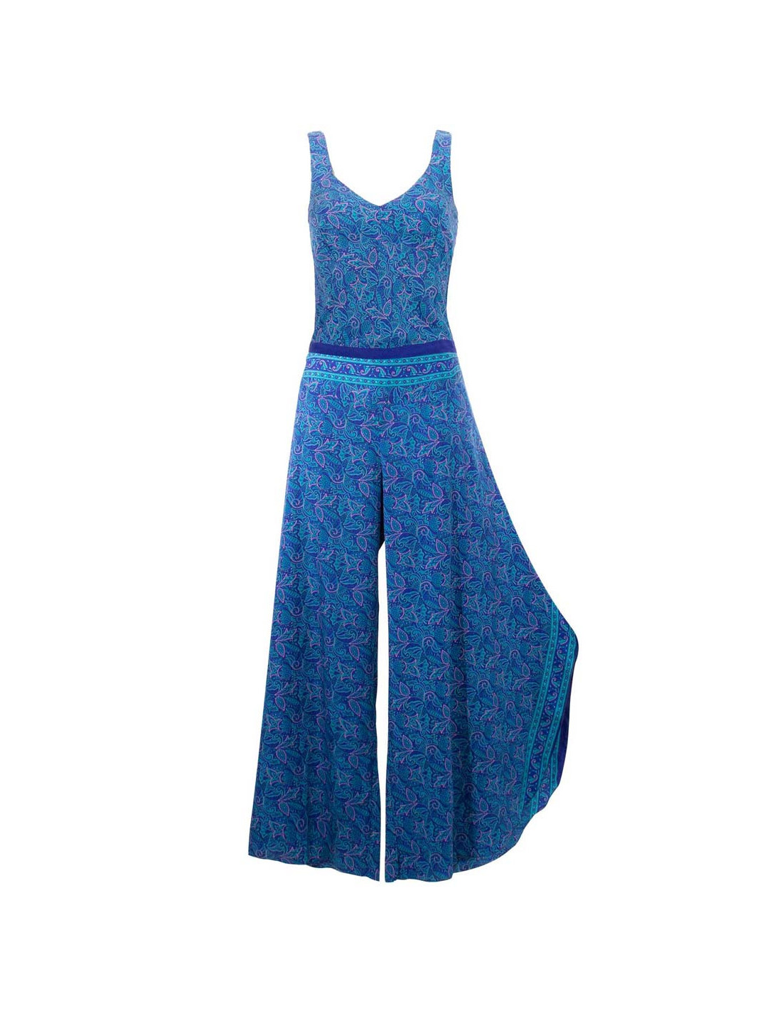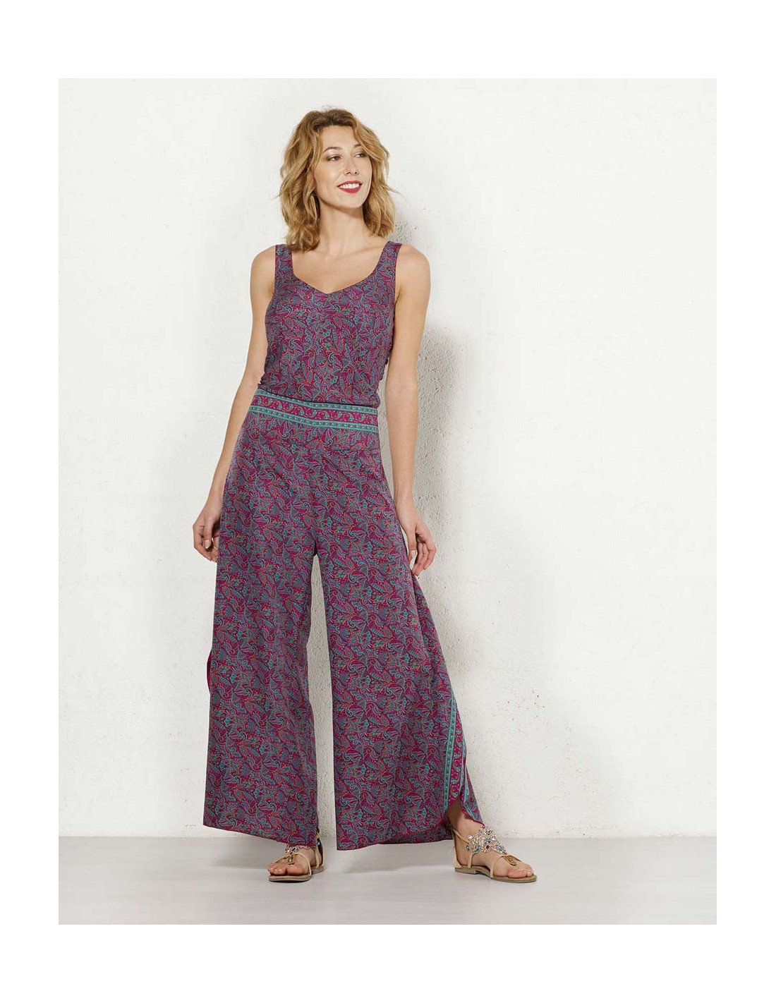 You will look gorgeous with this jumpsuit, its cut is perfectly adjusted. The straps are wide, the back is fully smocked, a wide strip of fabric marks the waist.