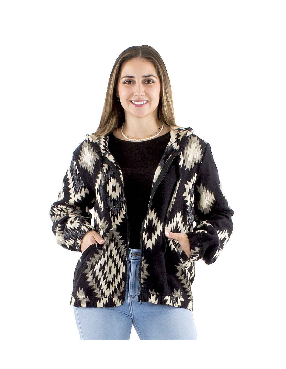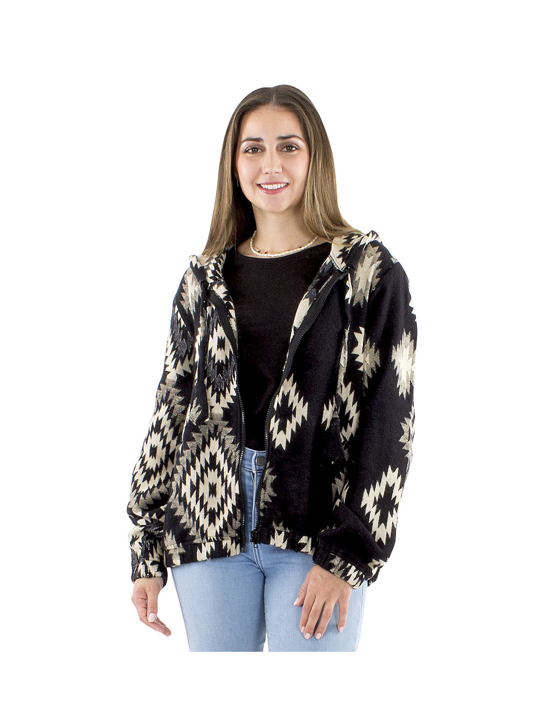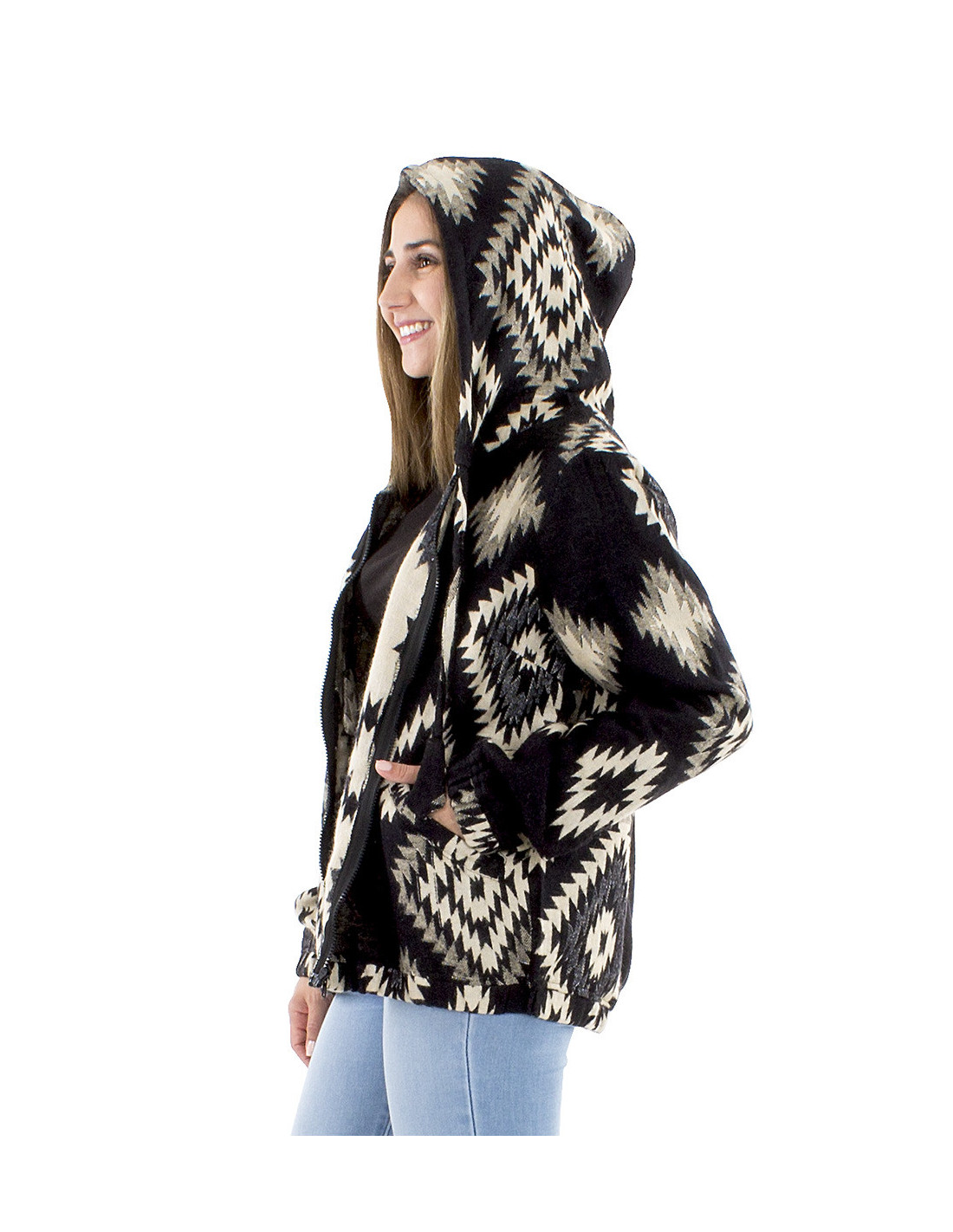 Short jacquard jacket with hood
