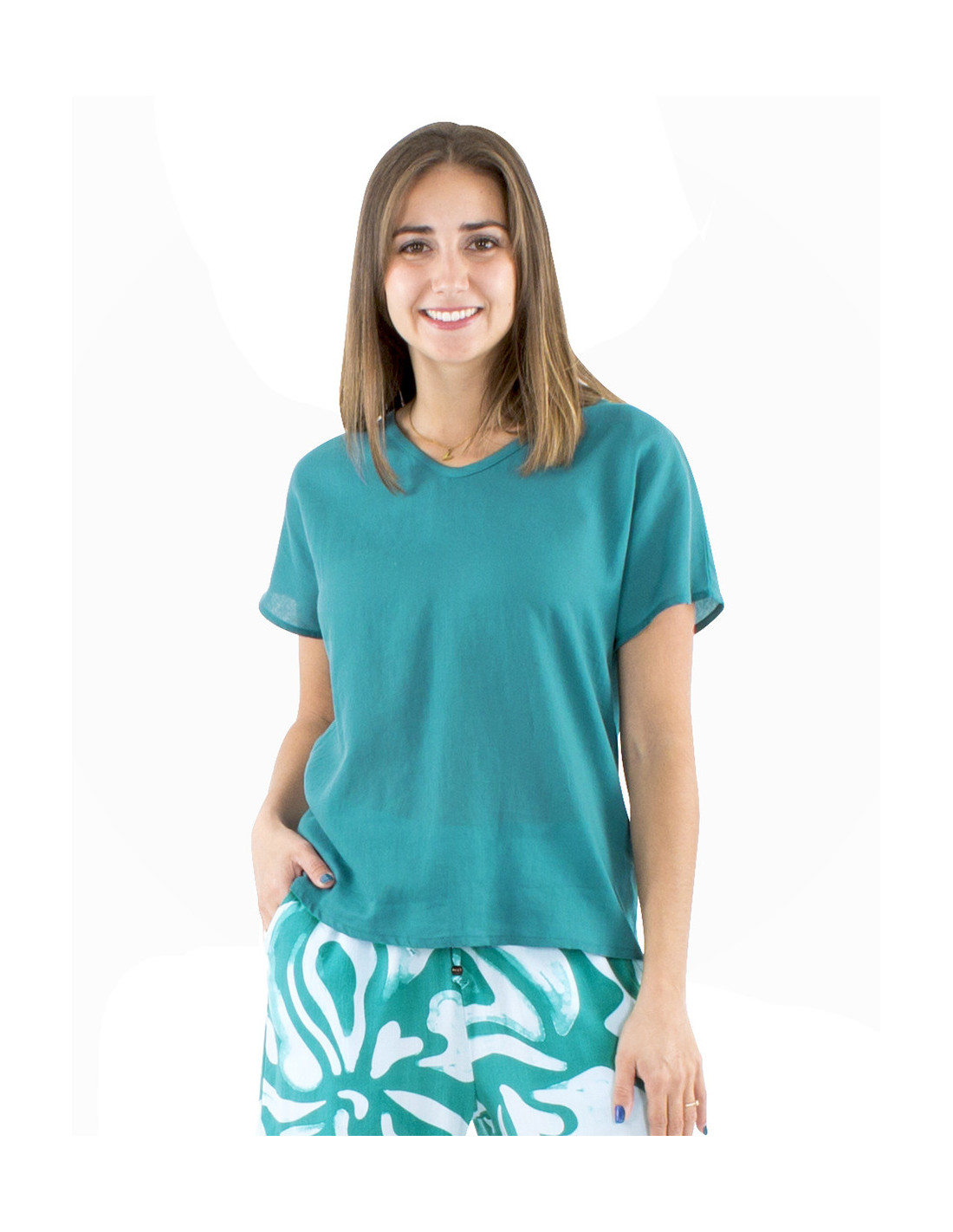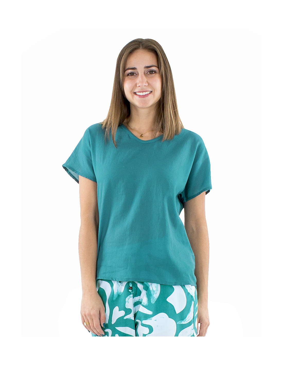 Short-sleeved top in 100% cotton, lightweight and plain : an essential basic for your summer wardrobe ! Incredibly comfortable to wear thanks to its soft, fine cotton, perfect for staying cool in the summer heat. Available in natural (off-white) as well as pastel shades like the trendy butter yellow of summer 2026, or bolder colors like emerald blue or terracotta. A basic piece that remains elegant and comfortable, and thanks to the wide range of colors available, you can easily pair it with your entire wardrobe ! Available in sizes S to XXL, wear it as often as you like !