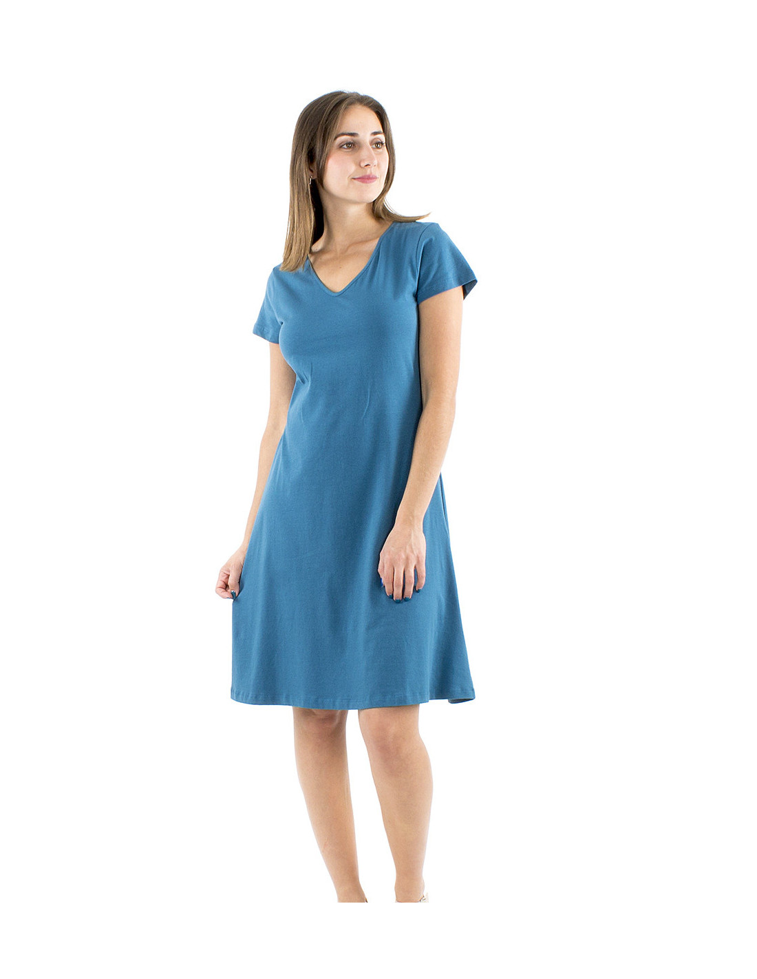 Flared cut short dress short sleeves