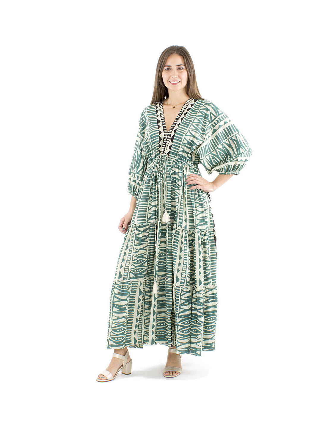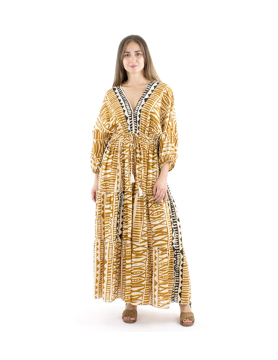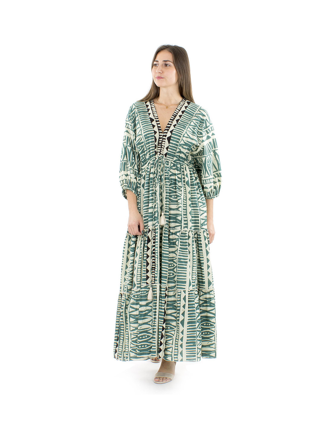 Cotton maxi dress afrohemian style