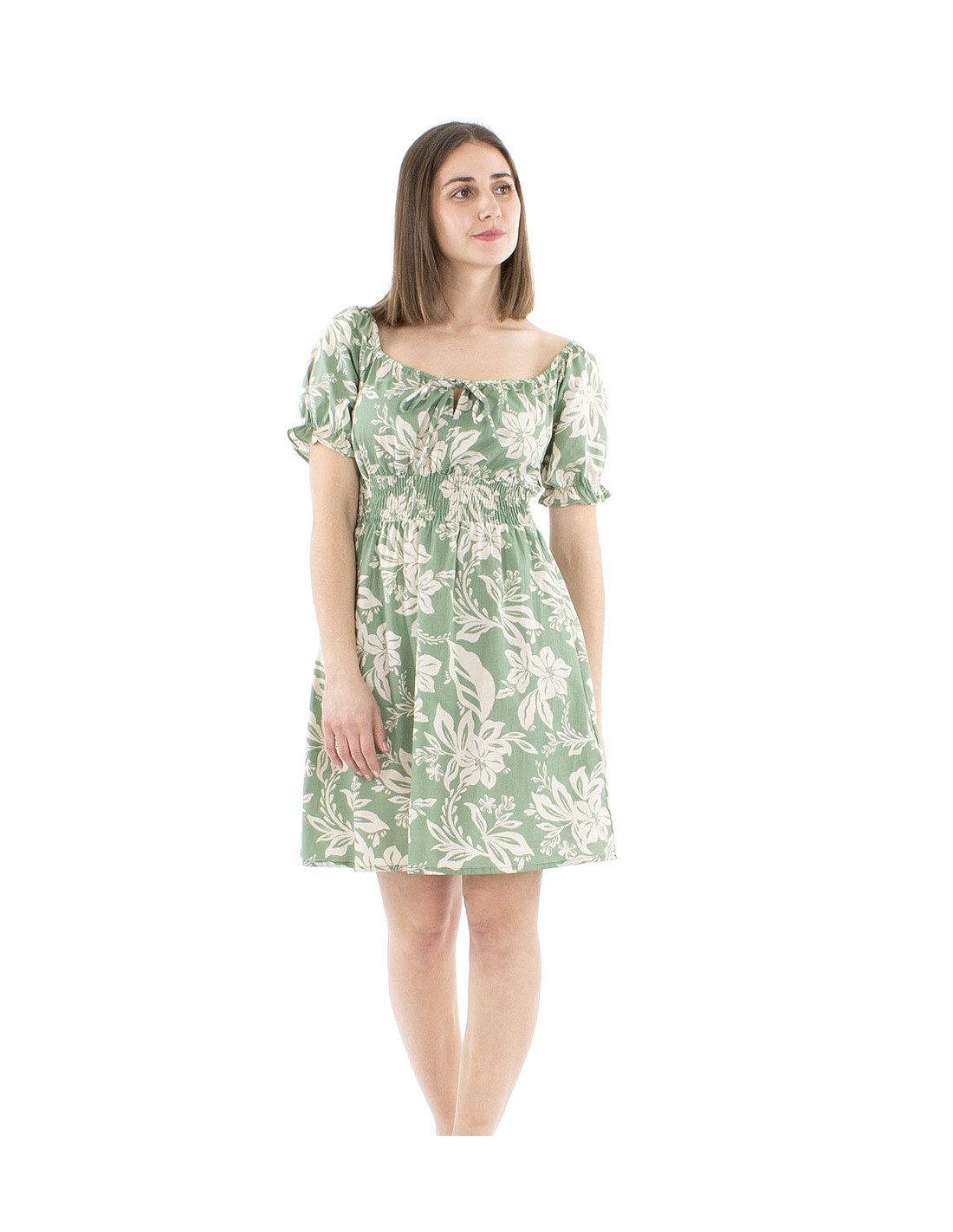 Short boho summer dress 100% cotton with romantic flower print : you'll absolutely love this short summer dress and its floral print, its flared cut and its elastic waist placed just under the breast for your maintain and comfort. It has short sleeves to face summer hot temperatures, with an elastic band and small ruffles on its borders for a guaranted charming effect. You can also choose to open less or more the wideness of its neck thanks to the two laces to tie in the middle of it. A beautiful comfy summer dress, a joyful floral pattern, available in deep blue, red or sage green, from S to XL.