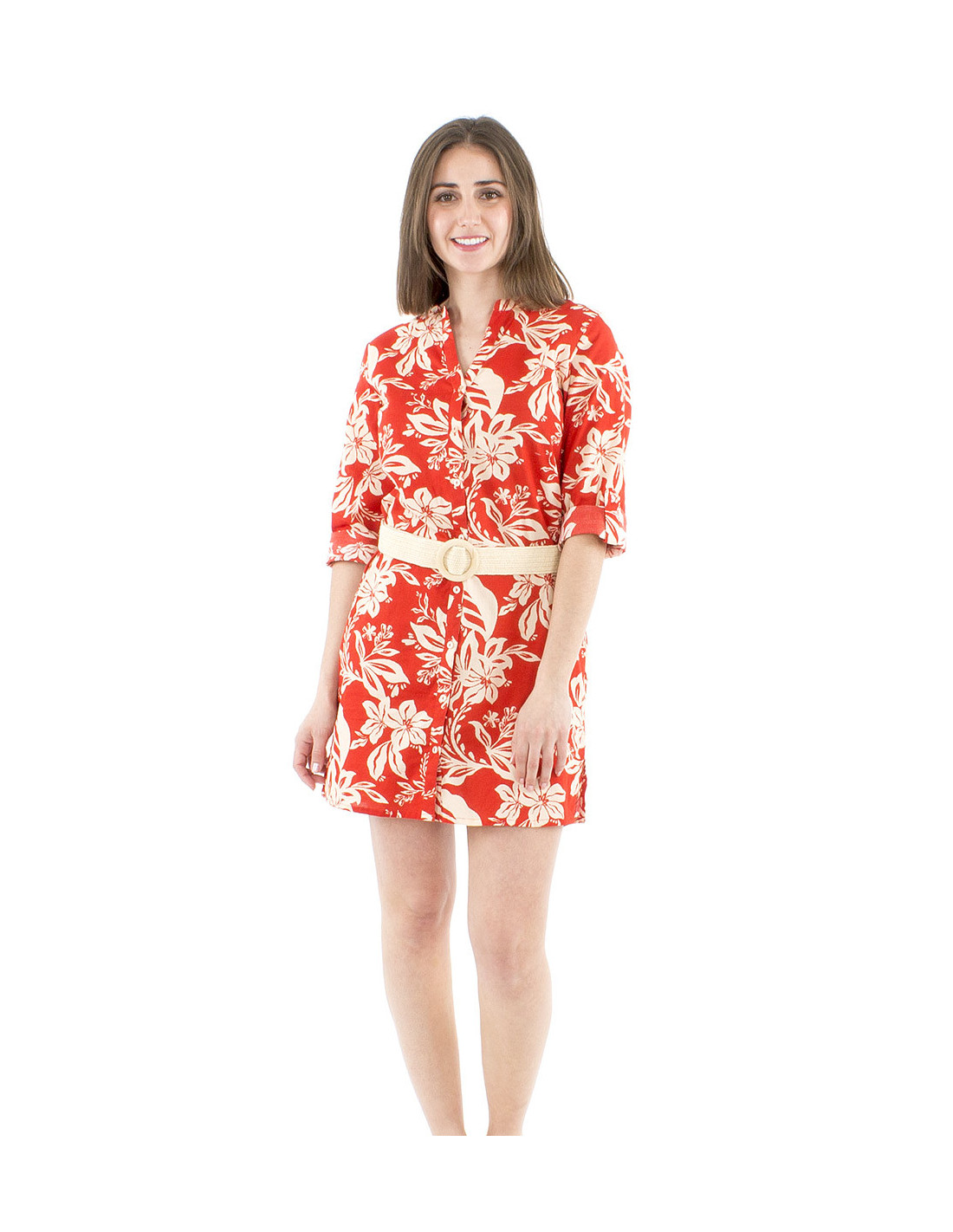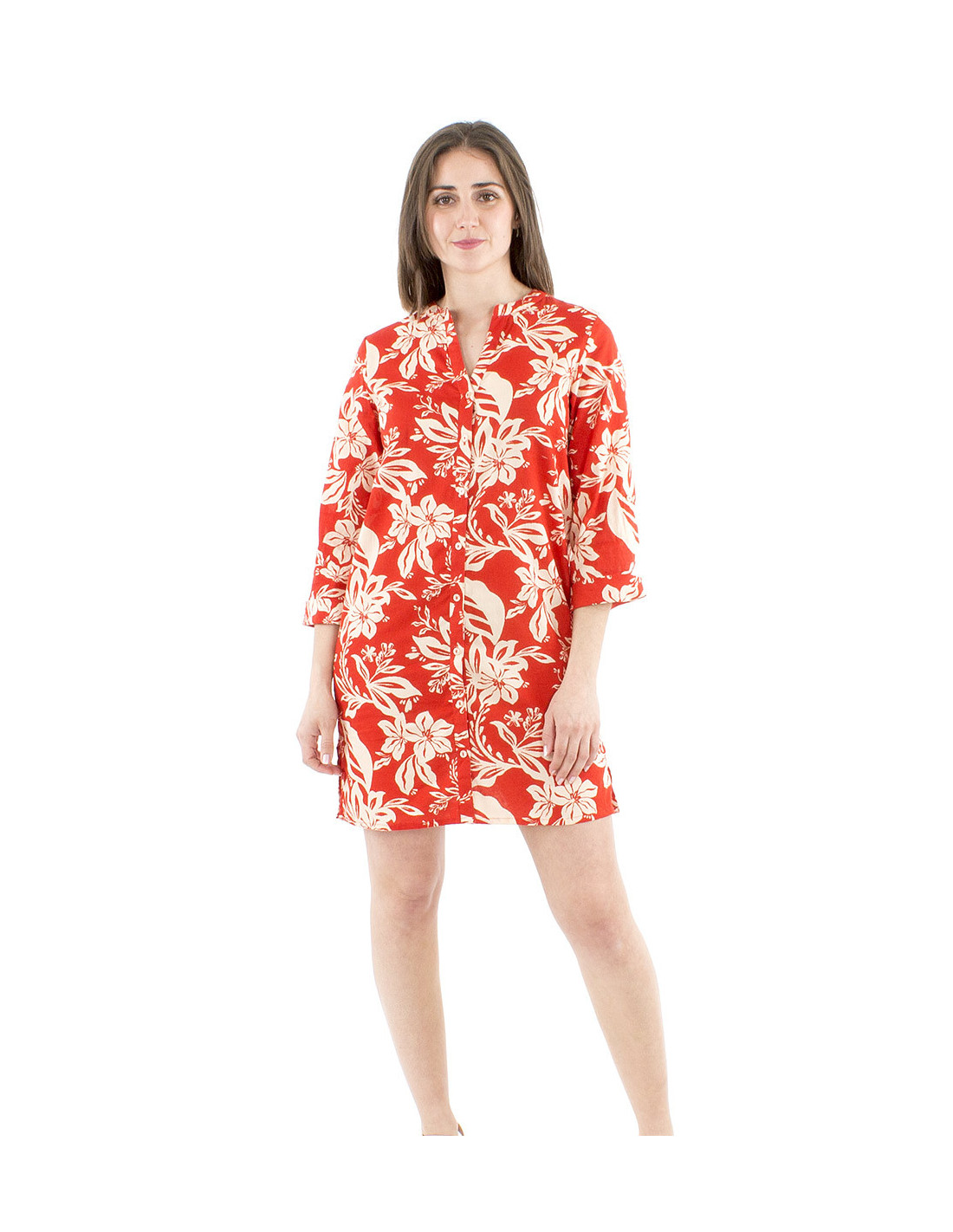 Boho summer tunic dress in cotton : This tunic dress is a two-in-one item that you can wear as a dress or a long opened shirt if you want to. You'll love the feeling of its light cotton fabric on your skin, it will let it breath and won't feel heavy on you even at the end of a long and hot summer day. Be colorful and original wearing this original and flowery tropical pattern, and feel feminine and classy with its mandarin V-neck and its adjustable sleeves guaranting you comfort and ease depending of the temperature of the day. This summer tunic dress is available in deep blue, red or sage green, from S to XXL.