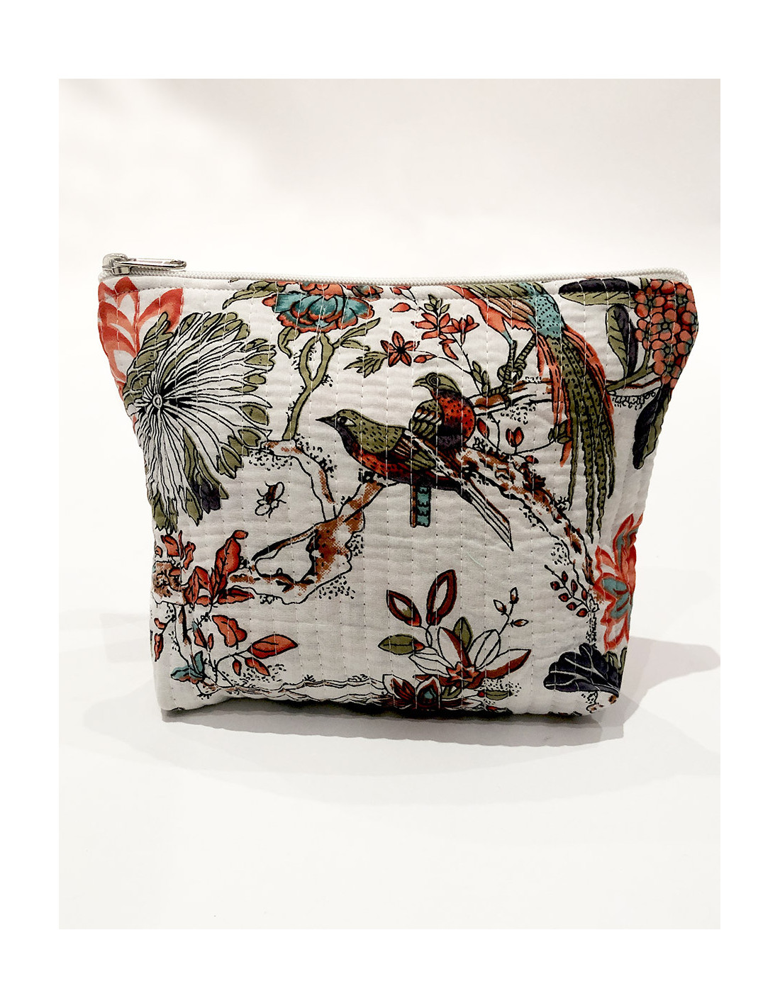 100% cotton travel pouch : We love this quilted pouch and its original, bohemian, or exotic prints. Its medium size is perfect for those who need space for their makeup and/or hair accessories. A zipper closure keeps your belongings secure in your handbag or travel bag, and the soft, comfortable fabric ensures your precious and essential items are kept safe and secure. Available in 4 different prints, all you have to do is collect them !