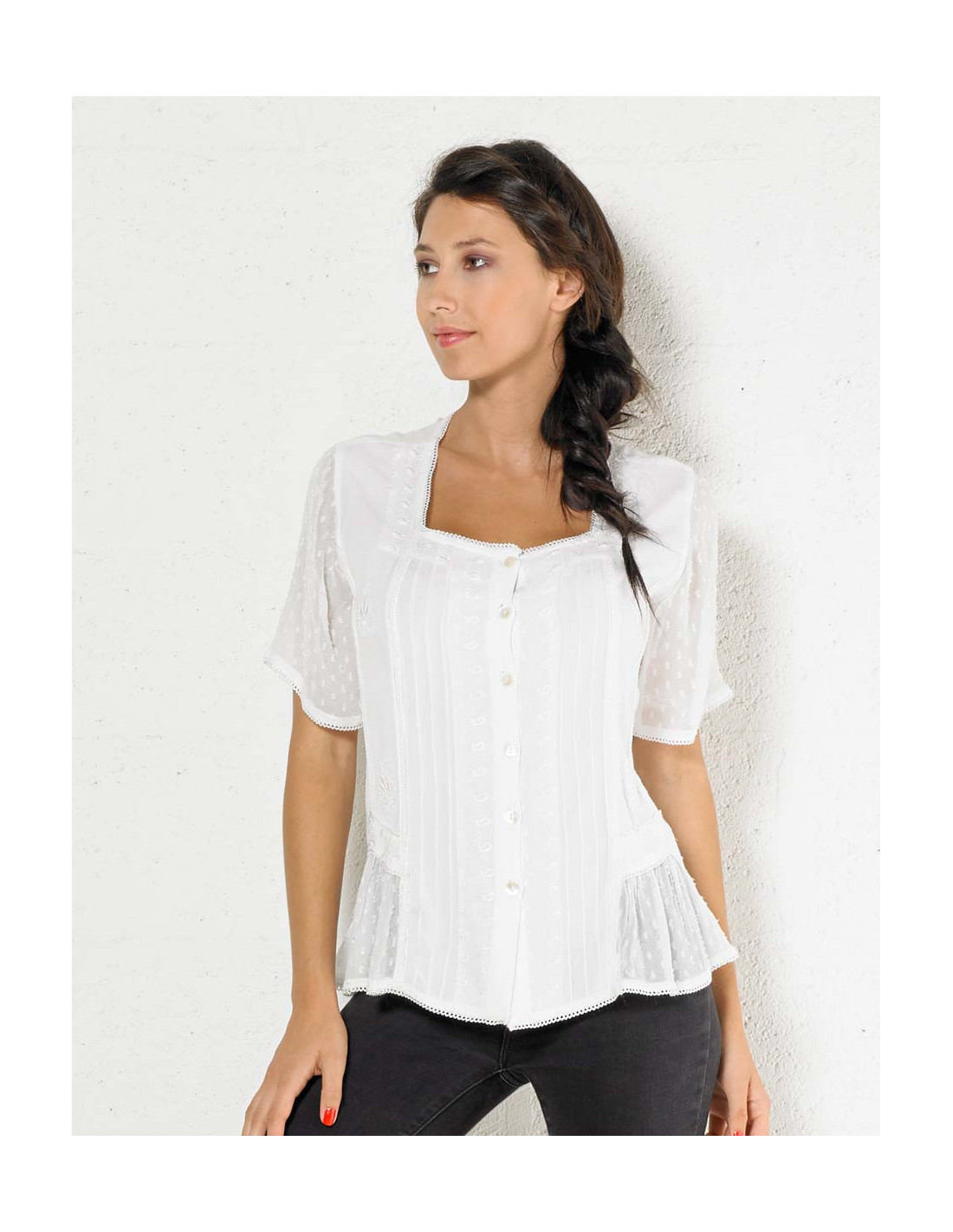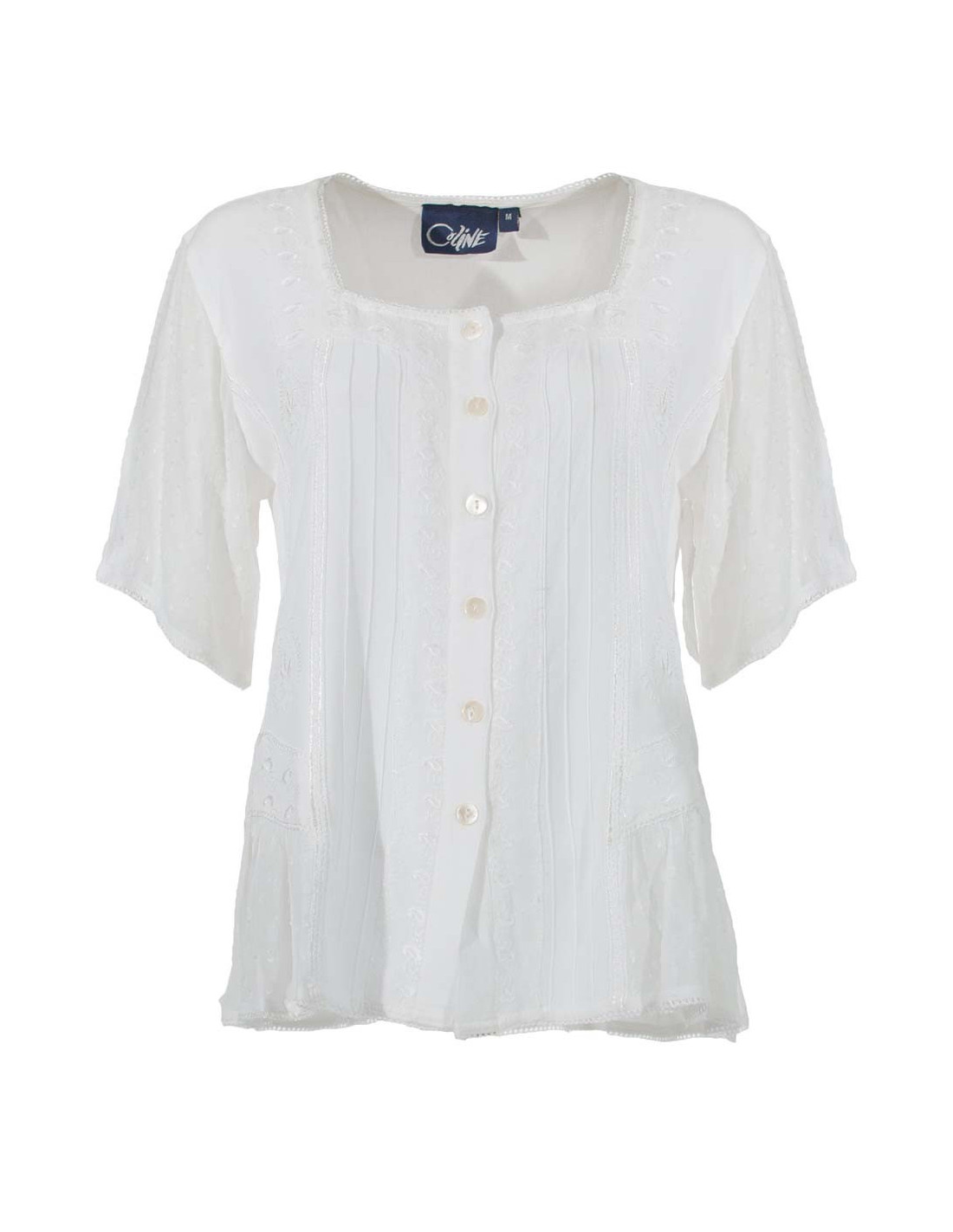 Chemisier femme dentelles manches courtes blanc
