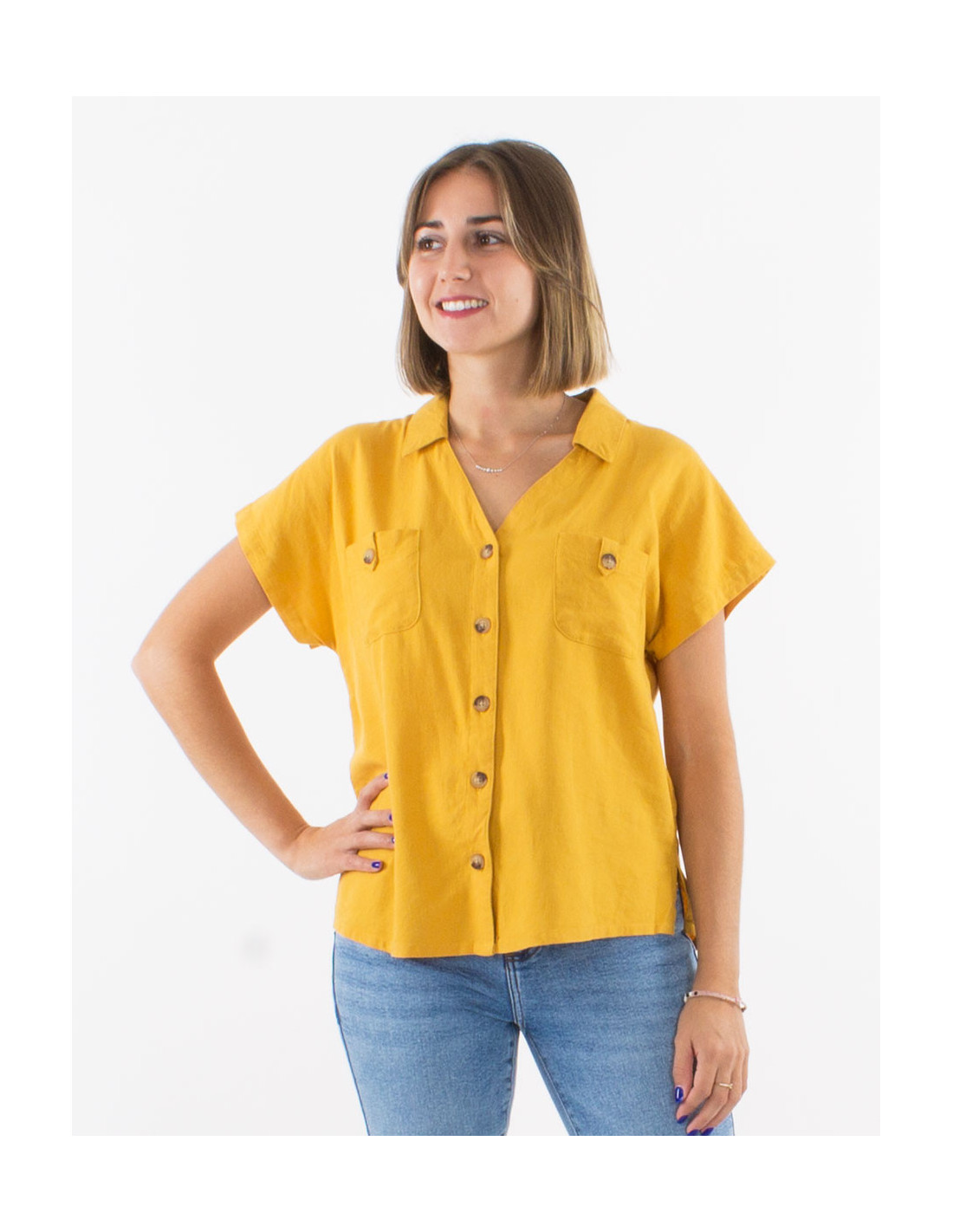 Chemisier basique à boutons bois