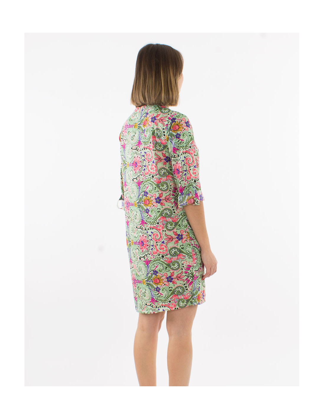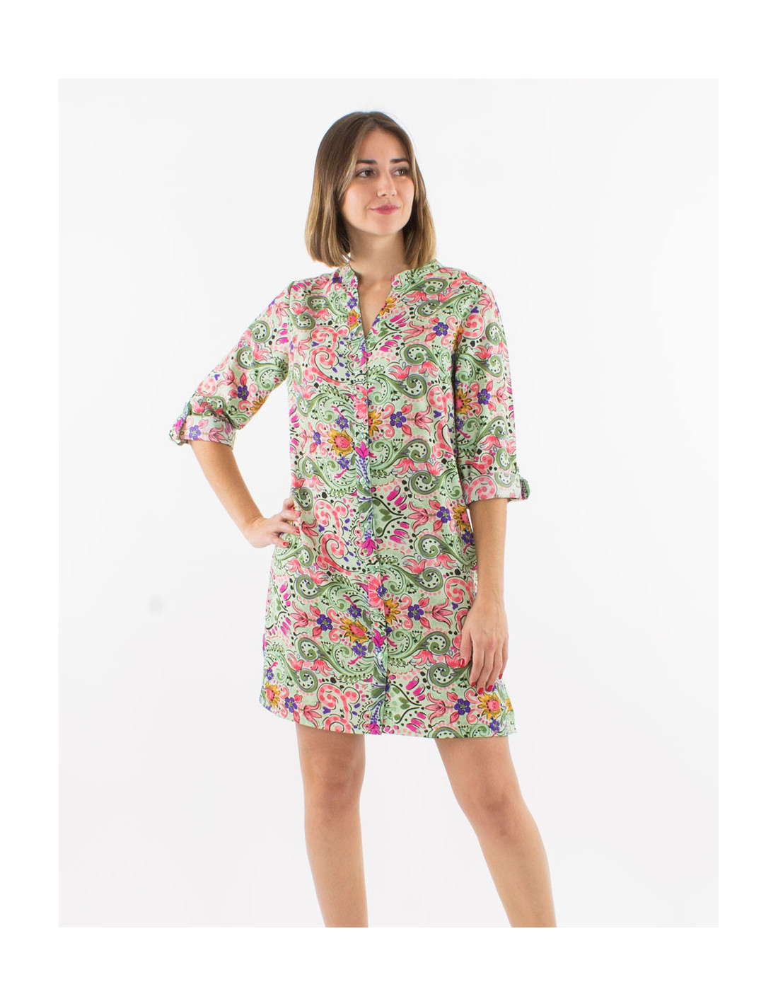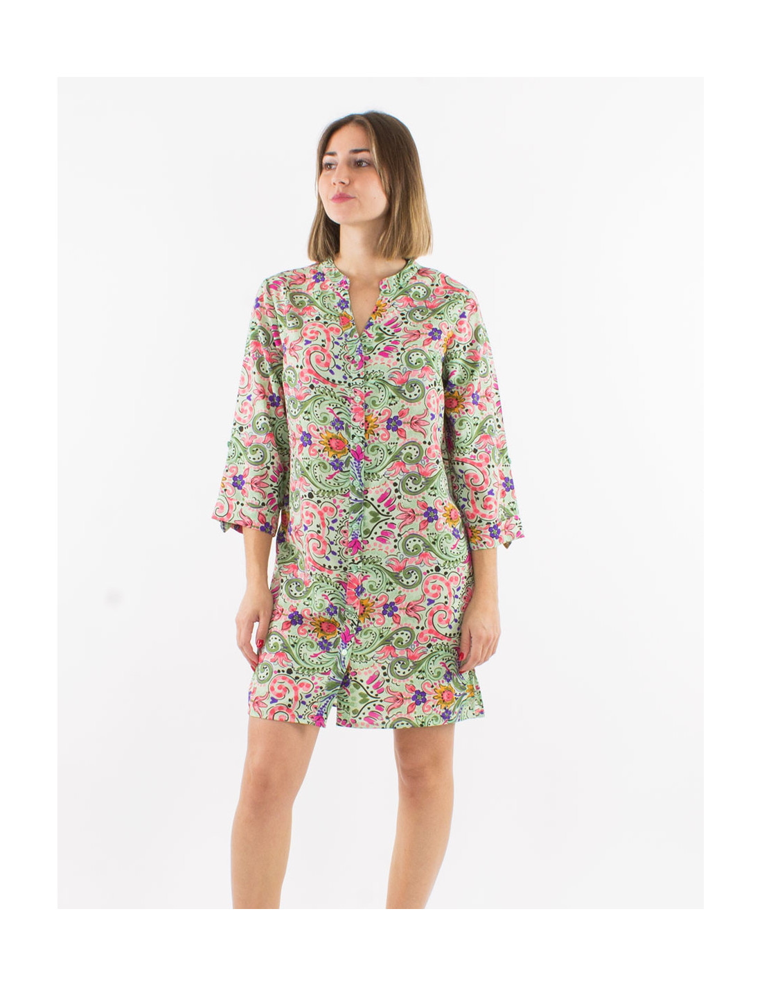 Robe chemise manches 3/4 motif cachemire