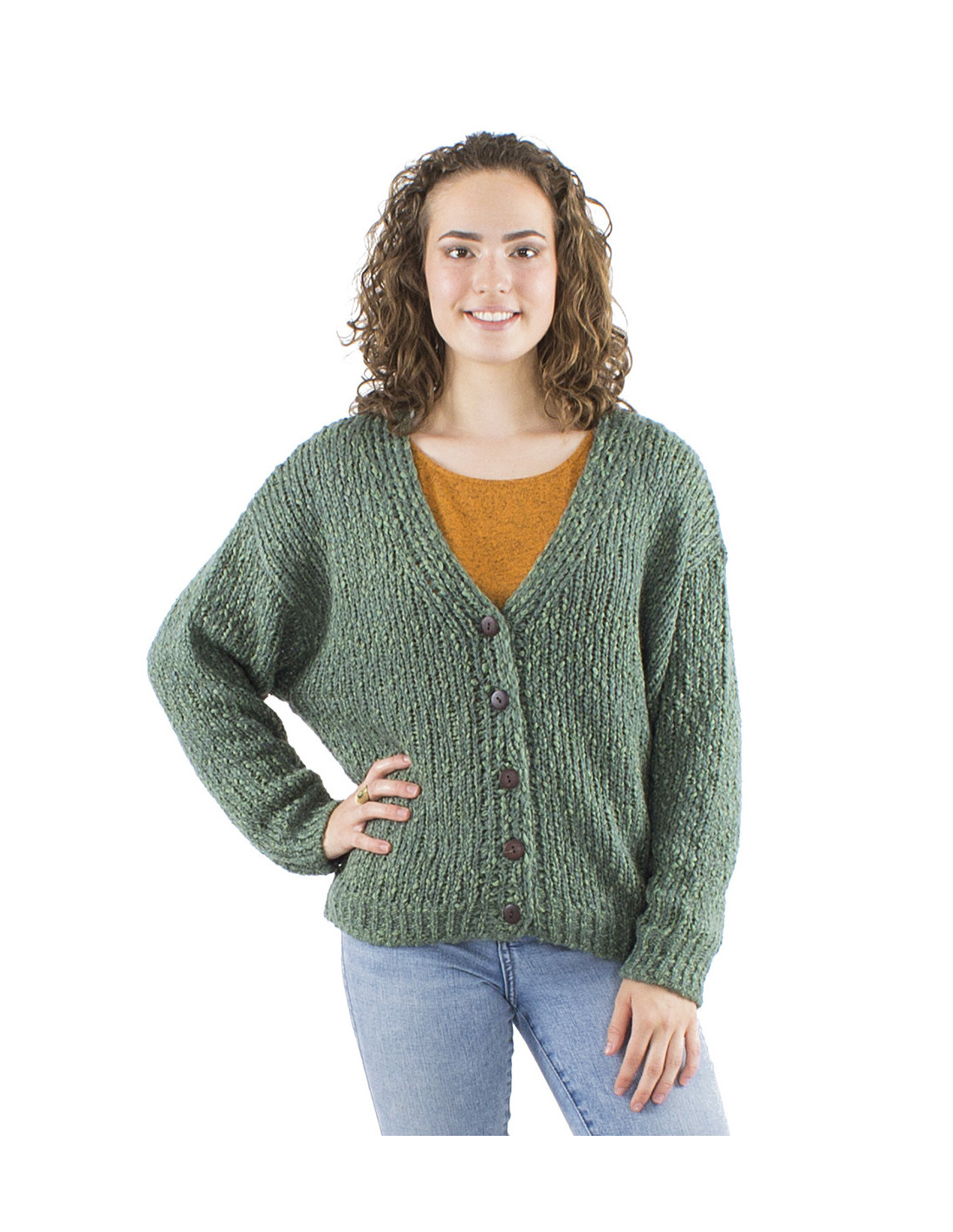 Veste gilet large, boutons effet bois