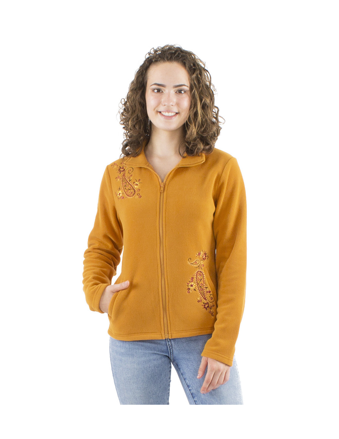 Veste polaire courte bohème brodée