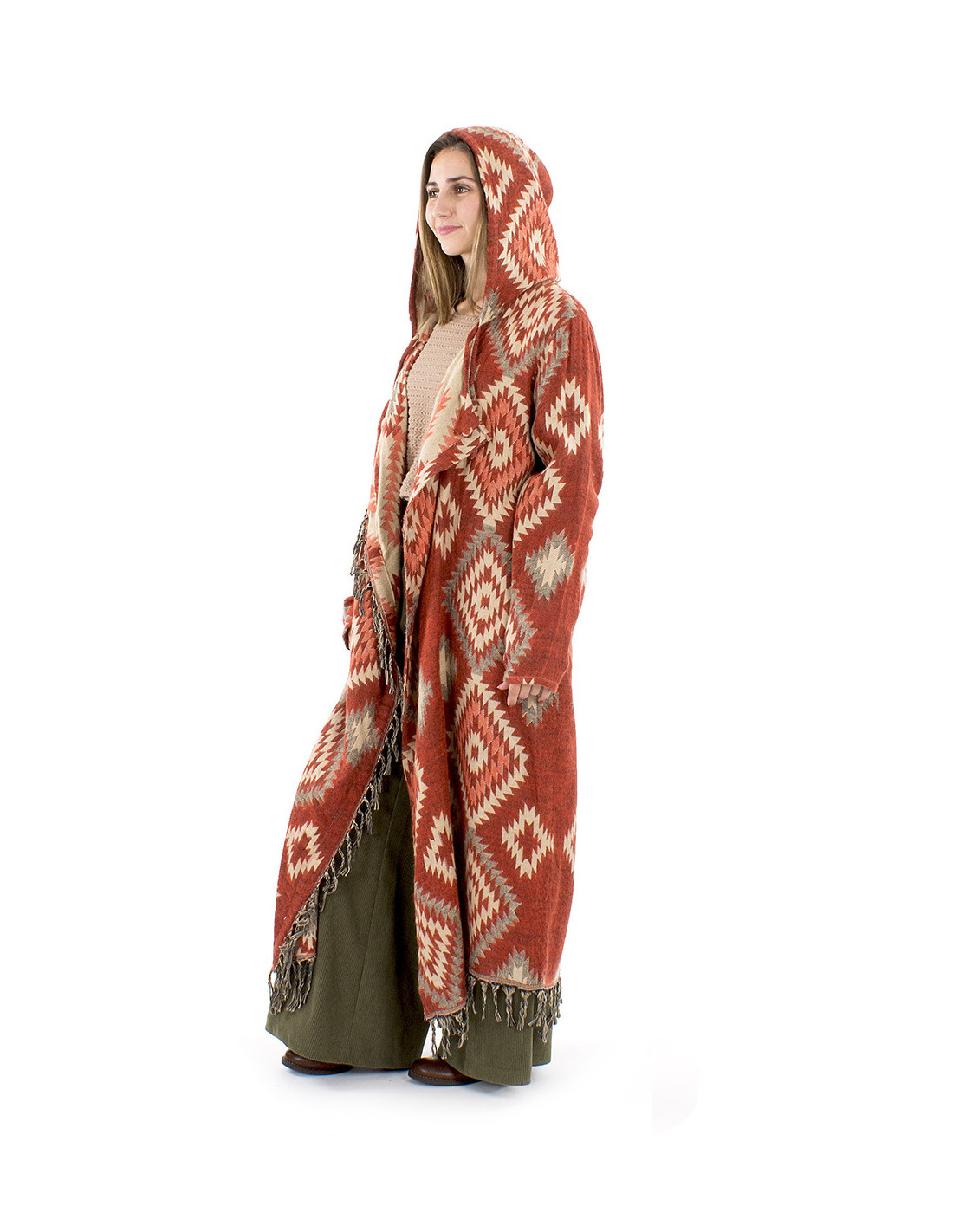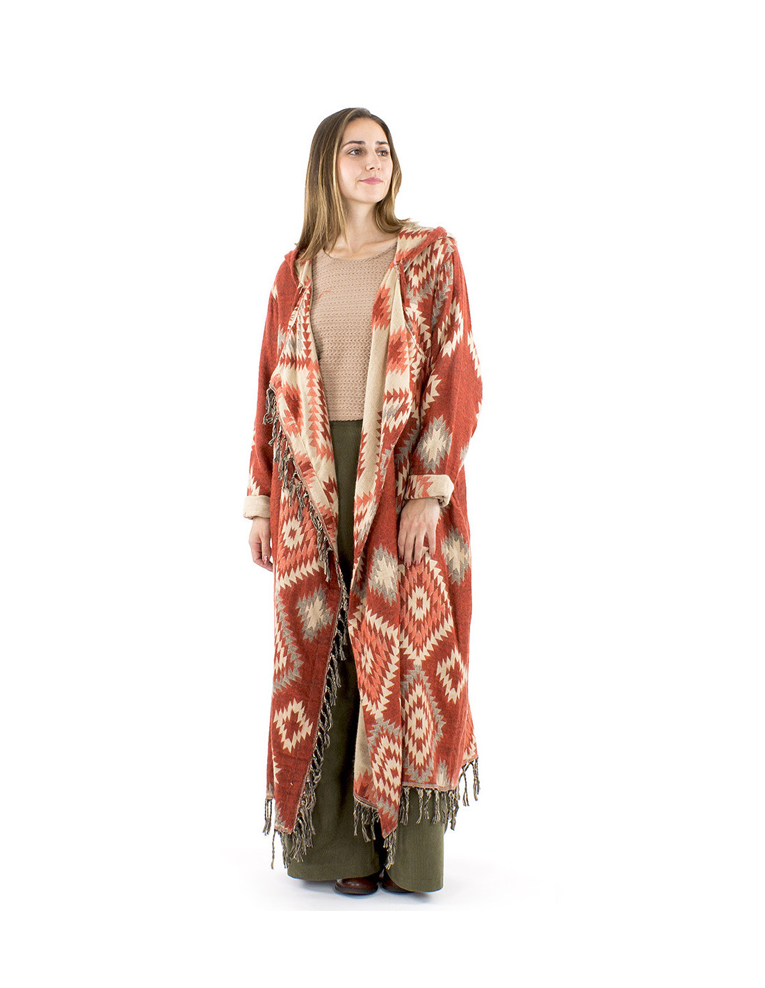 Veste longue à franges motif ethnique