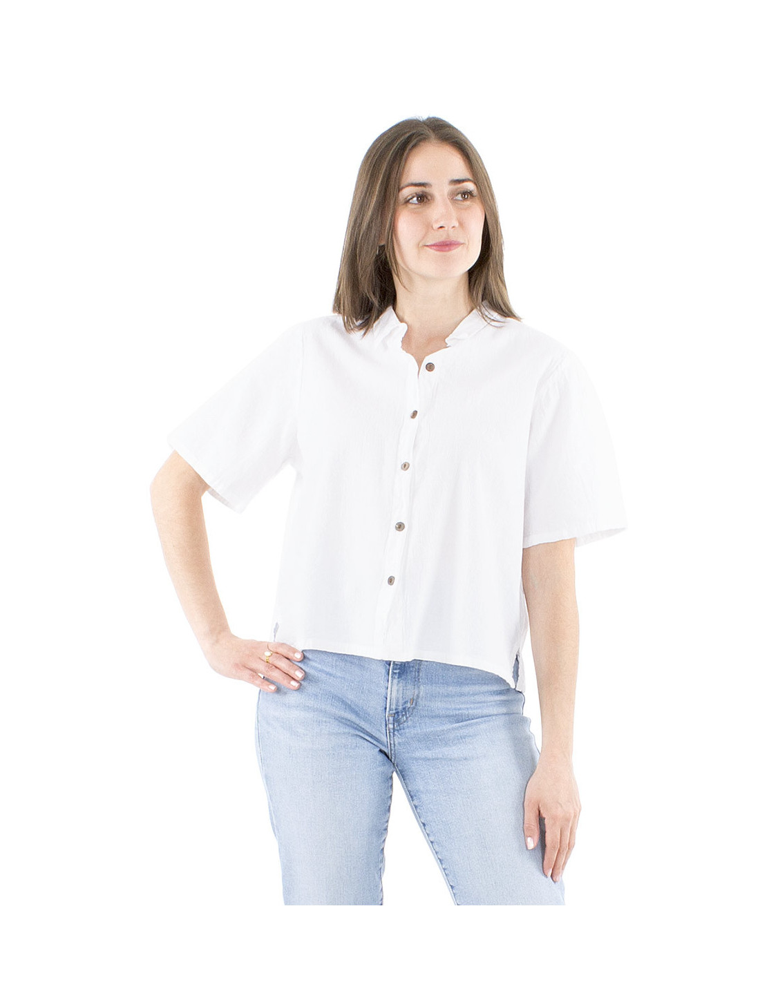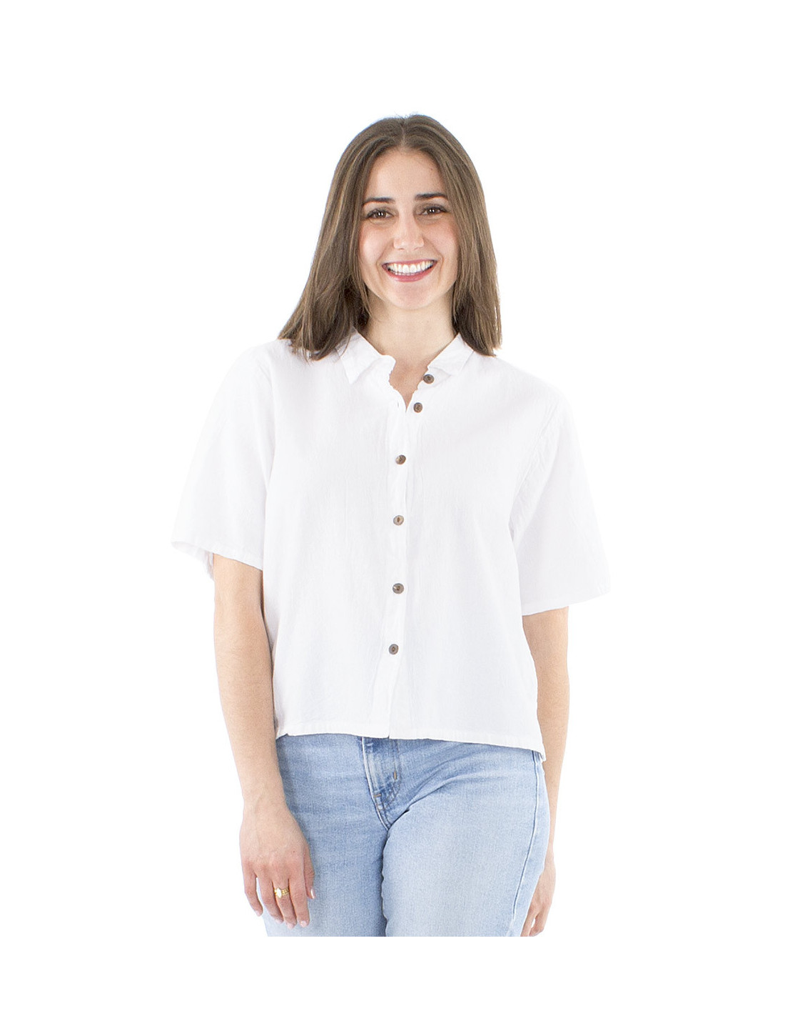 Ce modèle de chemisier pour femme 100% coton doté d'une coupe très ample et courte très originale va vite devenir votre pièce de style, vous aurez le choix entre couleurs vives, couleurs neutres, et teintes pastel comme le bleu ciel qui est très prisé cet année ou encore sa version vert sauge, couleur indémodable qui inspire à la paix et à la connexion à la nature. Ses manches courtes et larges vous permettront de vous sentir à l'aise tandis que son col à revers plus classique vous laissera la liberté de l'intégrer à une tenue d'été bohème chic, que ce soit avec une jupe longue bohème ou un pantalon oversize en coton uni. ce chemisier en coton est disponible du S au XXL et conviendra à toutes les morphologies.