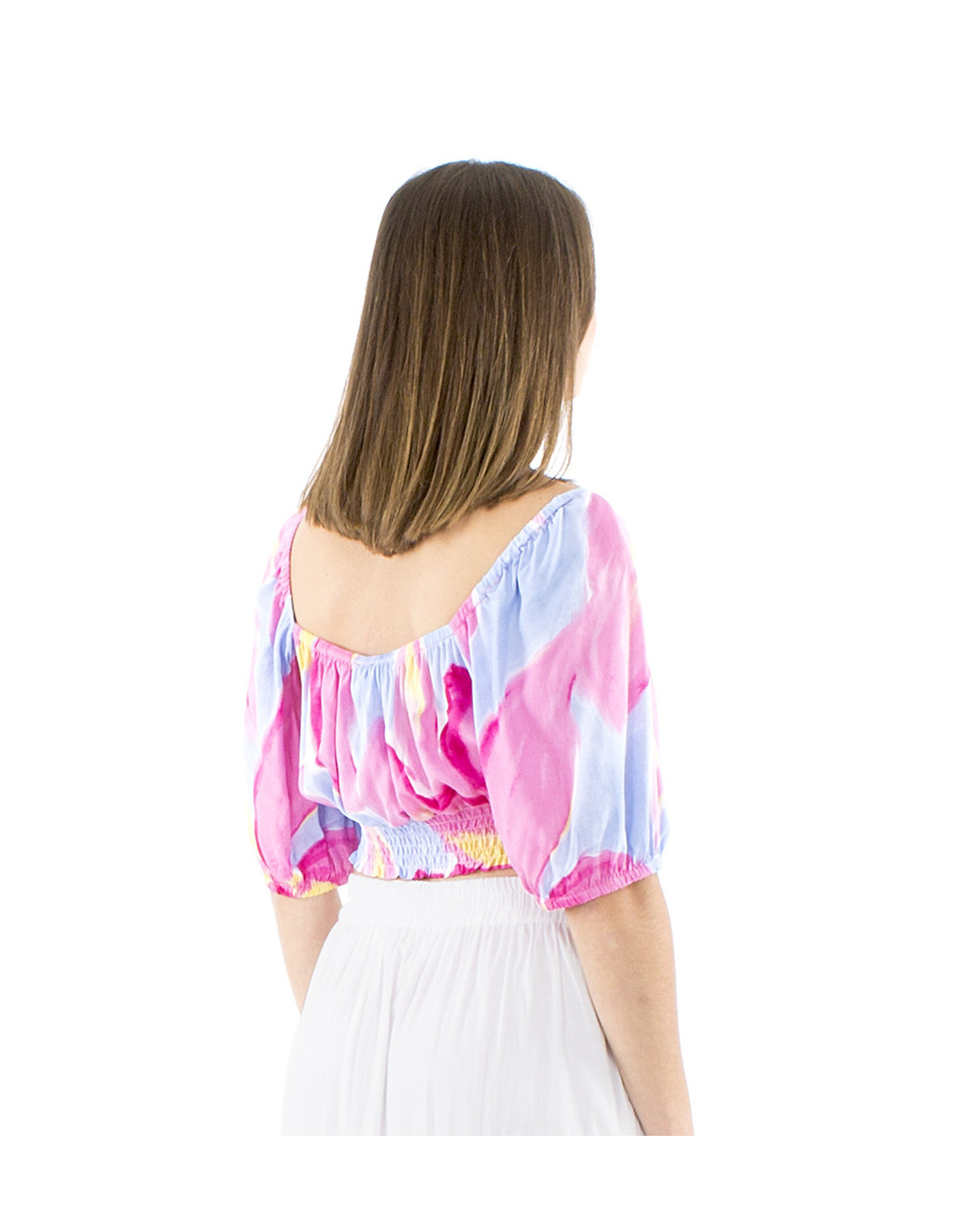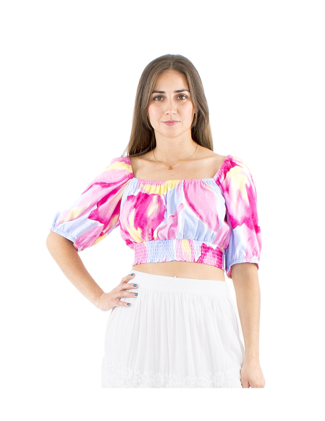 Le crop-top fluide et féminin : smock sous la poitrine et élastiques au niveau du col et des poignets vous garantissent un confort optimal et une grande liberté de mouvement. Son motif bohème fleuri dans des teintes pastels nous fait penser à un dessin réalisé à l'aquarelle et nous fait penser aux vibes colorées des années 80. On adore cette pièce qui donne de suite du pep's à n'importe quelle tenue, jean taille haute, pour rester dans les 70s/80s, short, neutre ou assorti, pour aller à la plage, jupe longue bohème blanche ou en rappel de couleur pour un style décalé et original, tout est posible, une petite pièce pour une mutlitude de possibilités, existe en orange, fuchsia ou bleu selon vos goûts et votre garde-robe, du S au L.