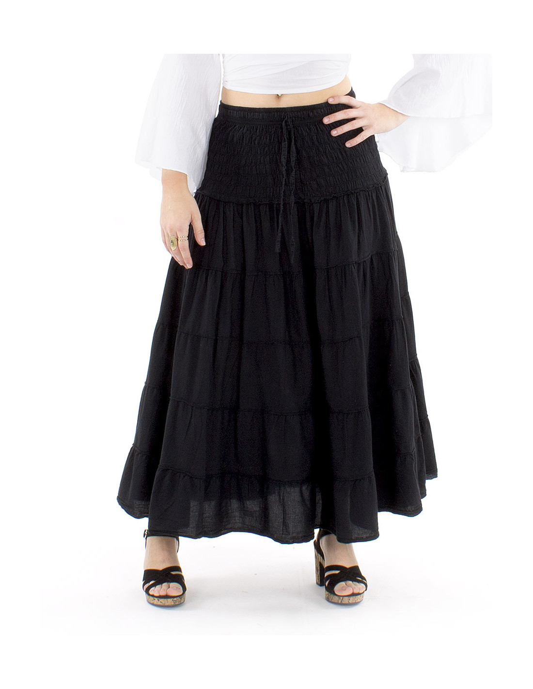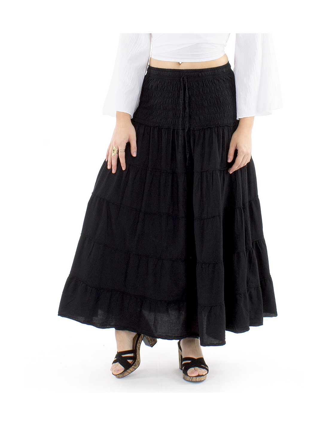 Jupe longue bohème coton avec volants