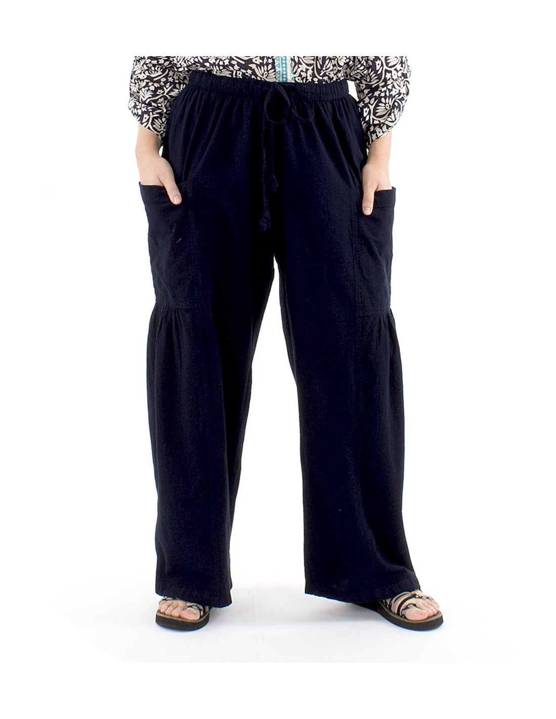 Pantalon bohème coton poches et fronces