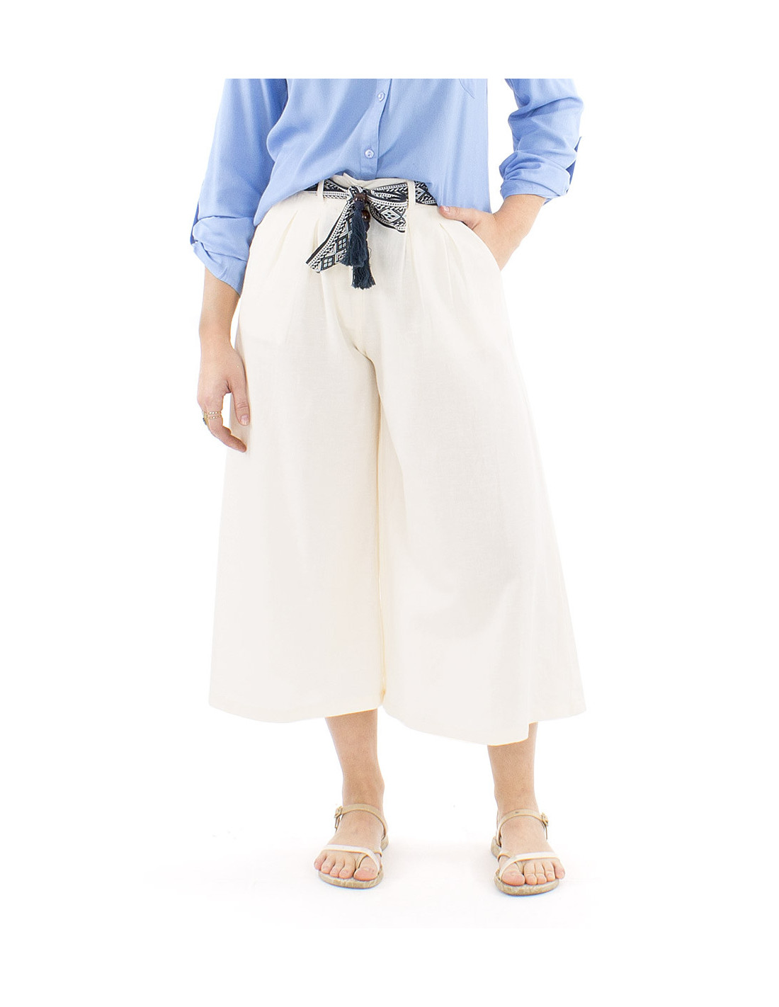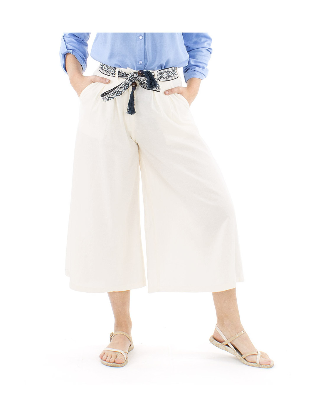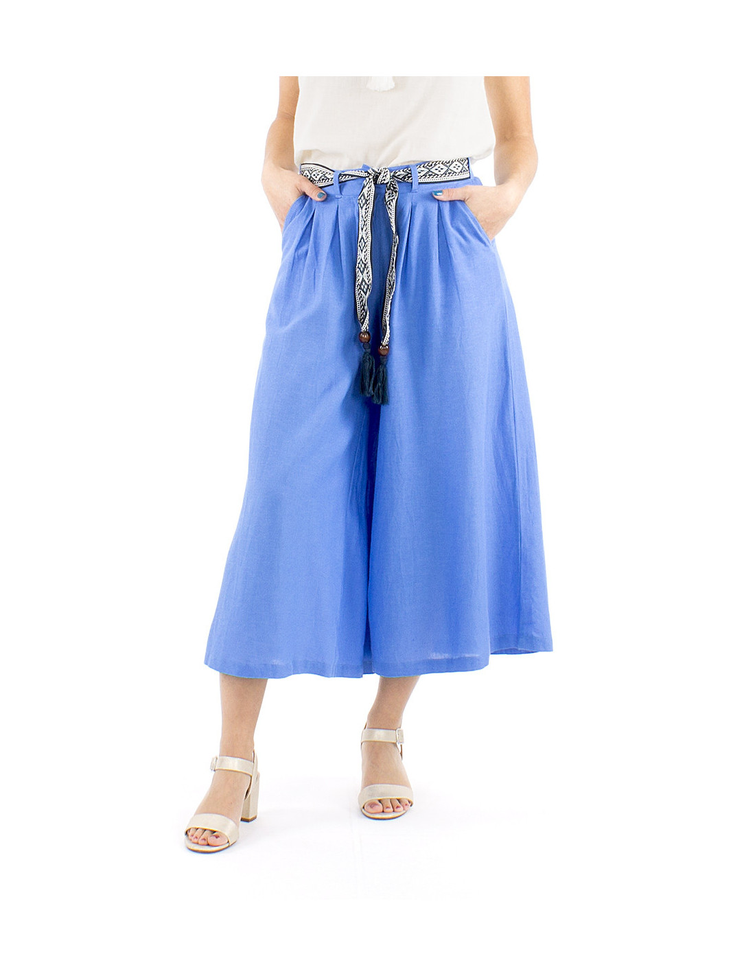 Pantalon jupe-culotte ceinture bohème