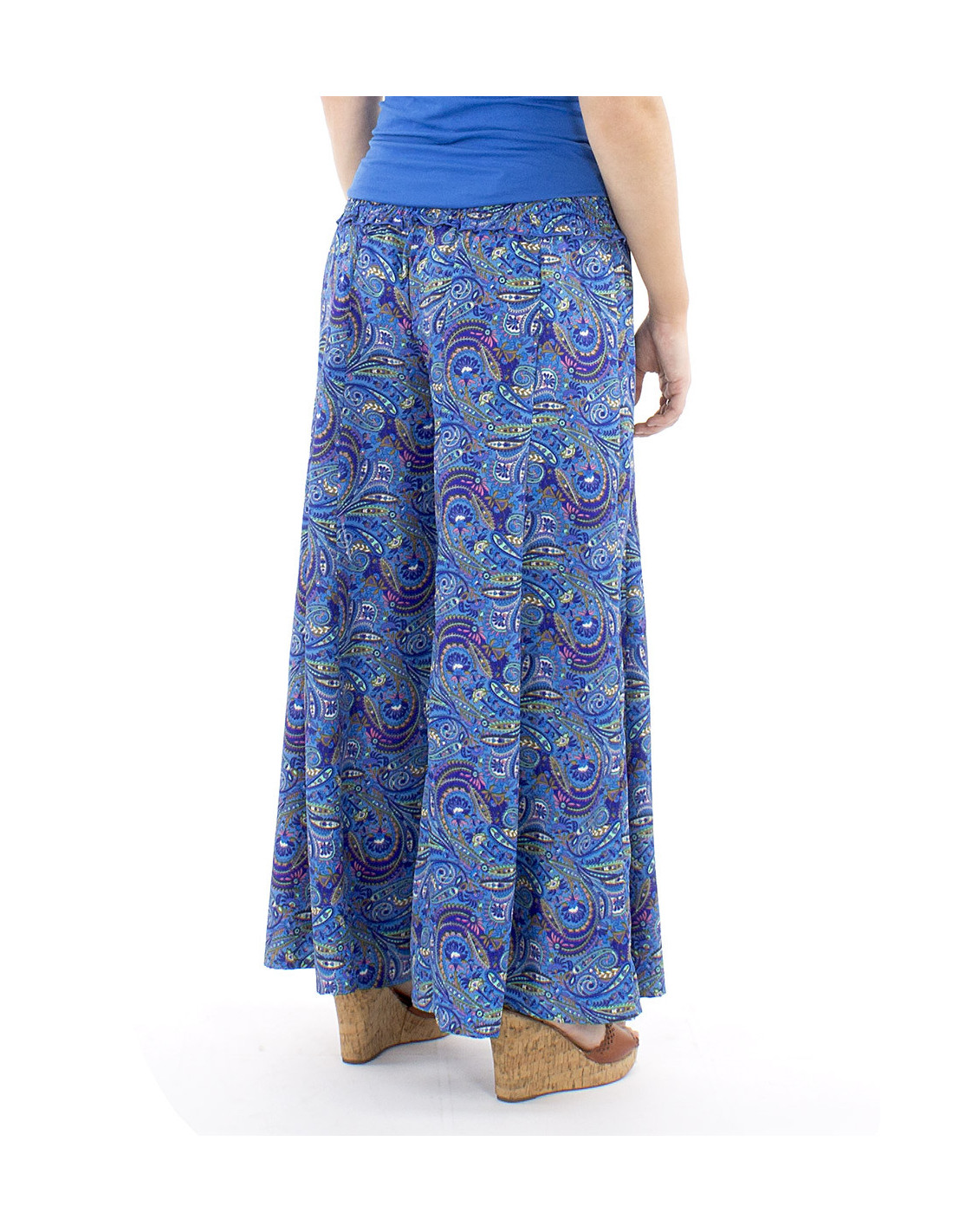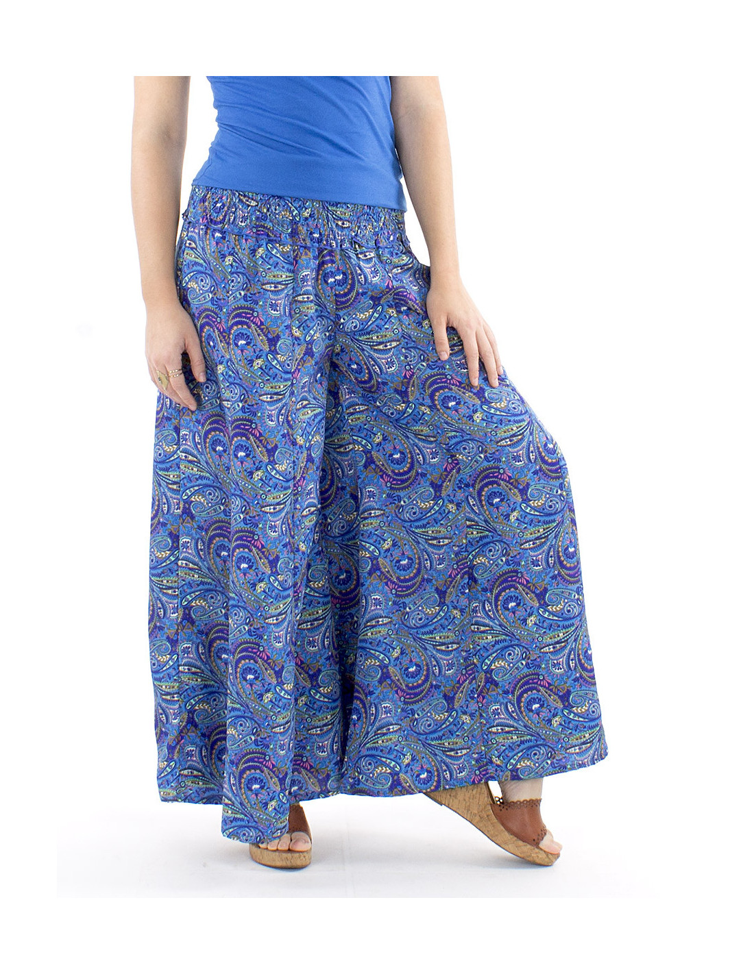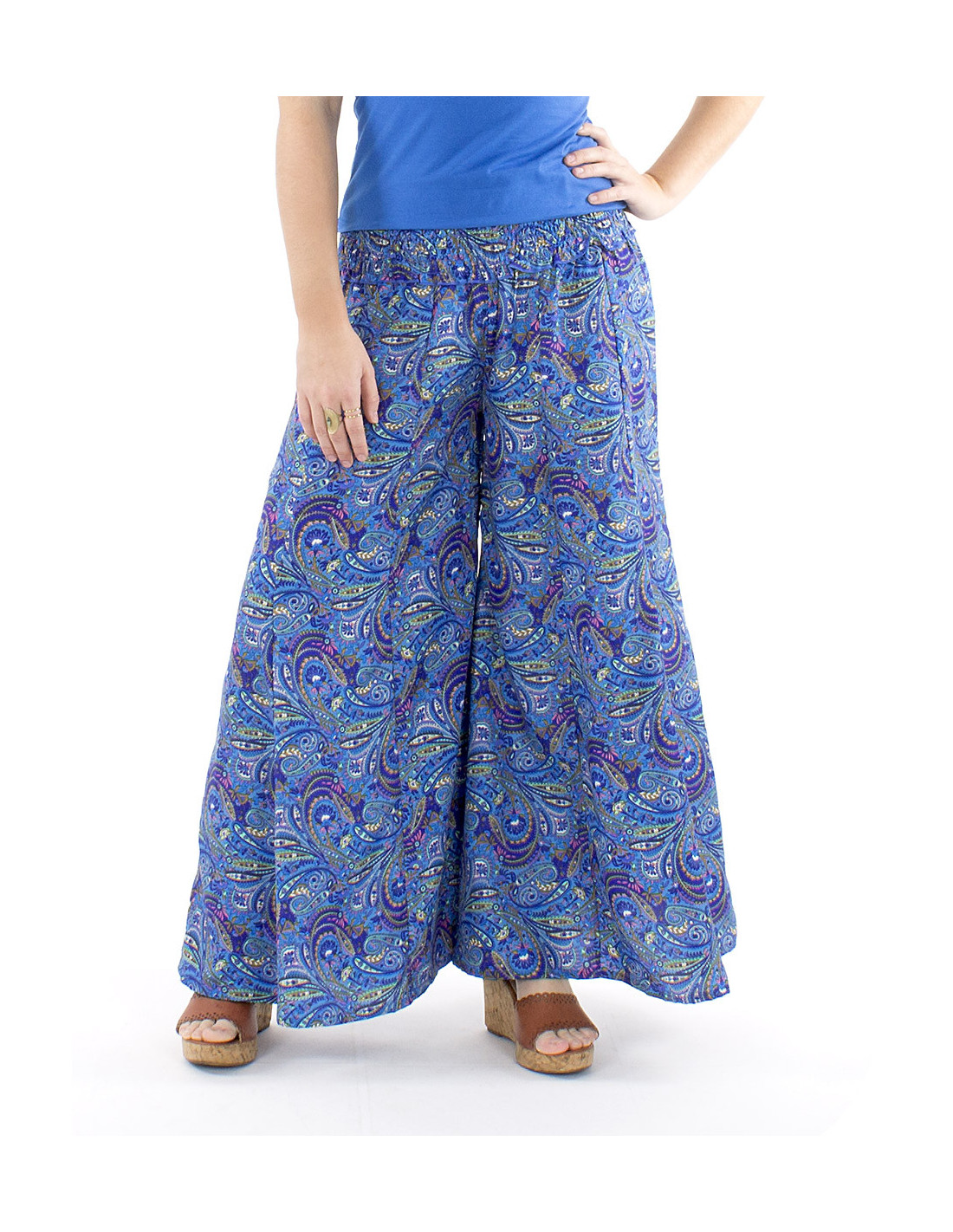 Pantalon oversize motif sari indien : la coupe extra large de ce pantalon est votre plus bel atout confort. Sa ceinture en smock à la taille vous permettra de vous sentir à l'aise en toutes circonstance et quelle que soit votre morphologie, un pantalon curvy friendly qui s'adapte à toutes les femmes quelle que soit leur silhouette. Coloré et original avec son motif cachemire décliné en différentes couleurs, il bénéficie également d'un tomber fluide et léger sans pour autant être transparent. Disponible du S au XL.