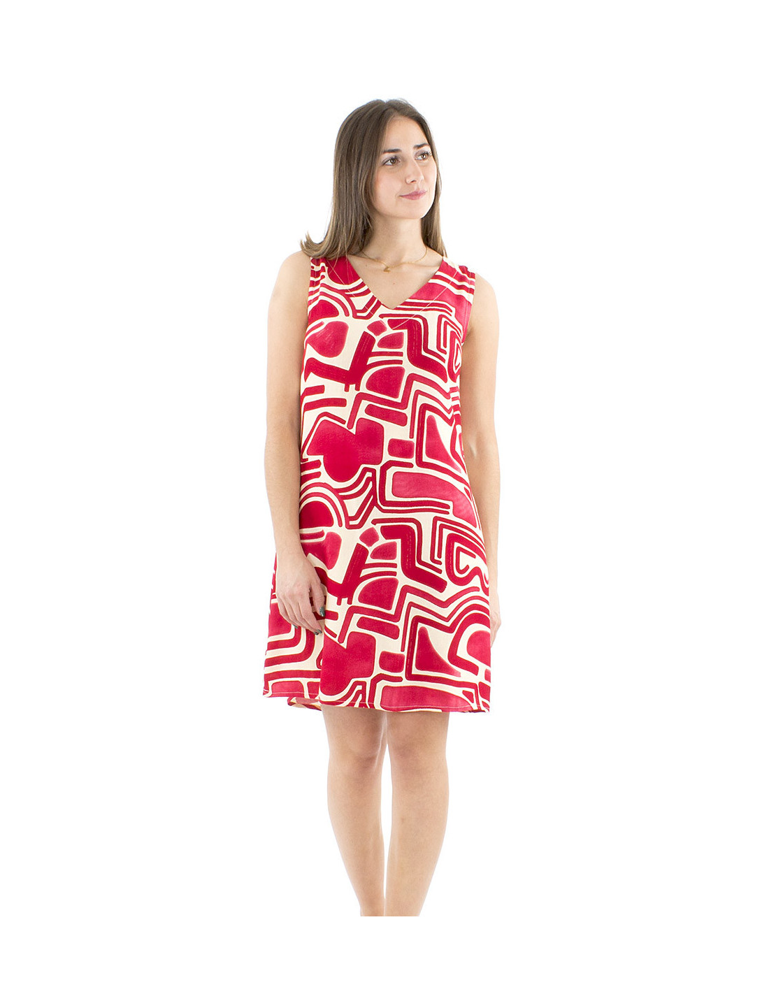 Robe courté d'été au motif original : Une robe d'été à la coupe classique avec de larges bretelles, une coupe légèrement évasée, qui trouve toute son originalité dans son motif coloré, en nuances de bleu ou de rouge, un design abstrait qui ferait penser à de la géométrie à main levée, ou à une oeuvre d'art contemporaine. On adore ses lignes de différentes largeurs et ces nuances qui nous rappellent l'aquarelle. Cette jolie petite robe a, en plus d'un motif fort original, un tombé fluide aérien et un toucher très doux. Parfait pour la saison chaude, à porter en toutes circonstances, à la mer comme à la ville. Vous la retrouverez couleur kaki, pétrole ou fuchsia, du S au XL.