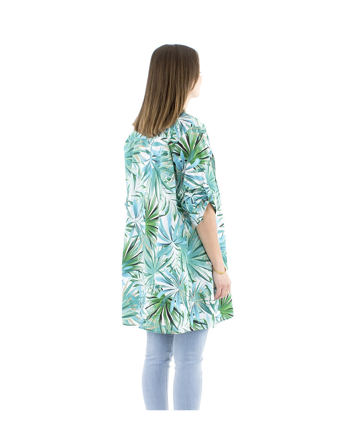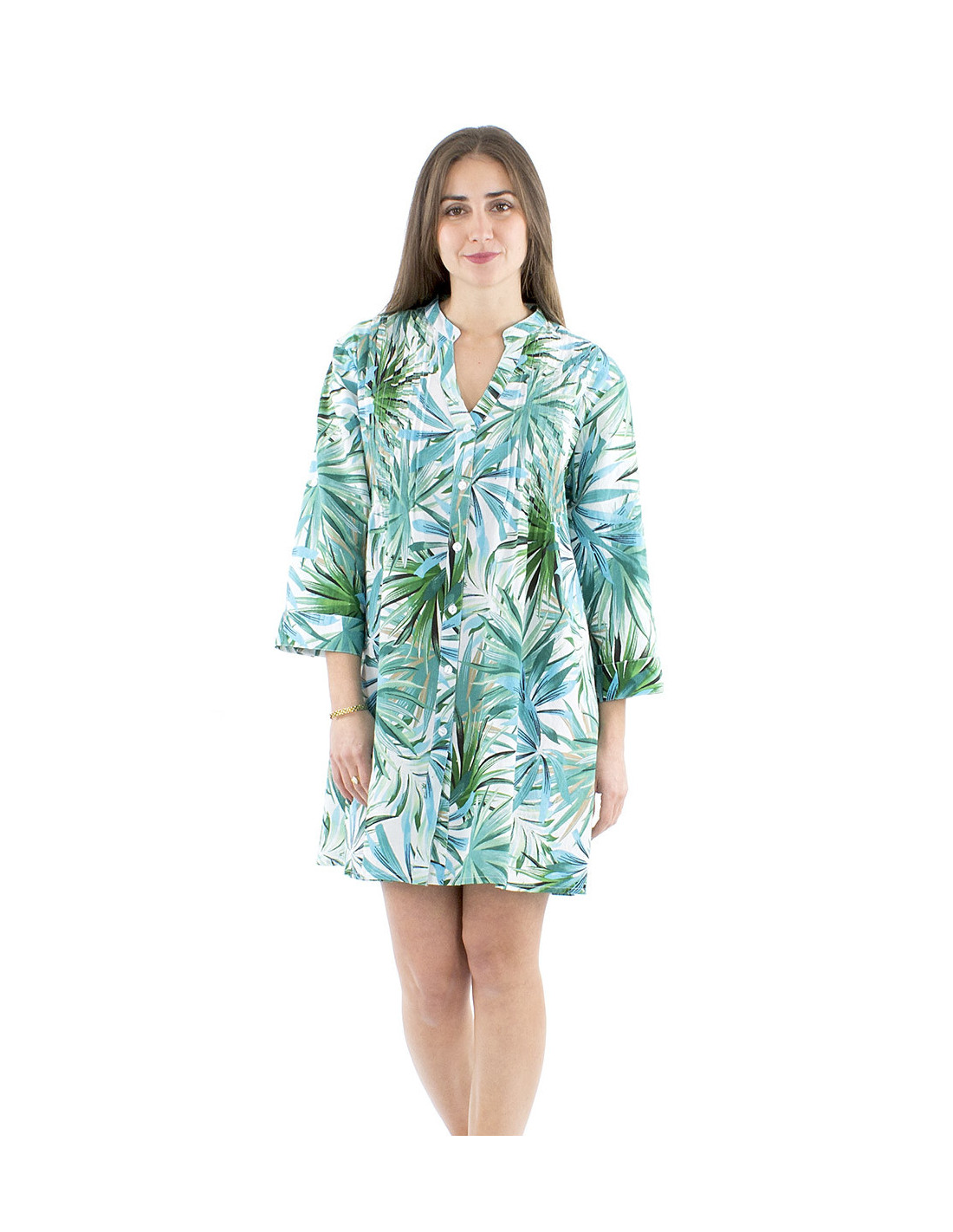 Robe tunique 100% coton design tropical : Sentez-vous légère et féminine dans cette jolie robe d'été colorée, sa coupe chemise assez ample pour garantir votre liberté de mouvement vous procurera confort et bien-être tout au long de la journée. Vous apprécierez son originalité avec ses fronces au niveau de la poitrine et son col incurvé inspiré du col mao, tout comme ses manches retroussables très pratiques. Sa confection 100% coton lui donne une touche nature et la rend agréable à porter, en toute légèreté. Cette robe tunique d'été peut également se porter en tant que veste légère si vous la laissez ouverte sur un top ou un débardeur. On adore son motif tropical qui inspire au voyage et aux vacances en bord de mer. Ce modèle est disponible du S au XXL, en vert ou en rouge en fonction de vos préférences personnelles.