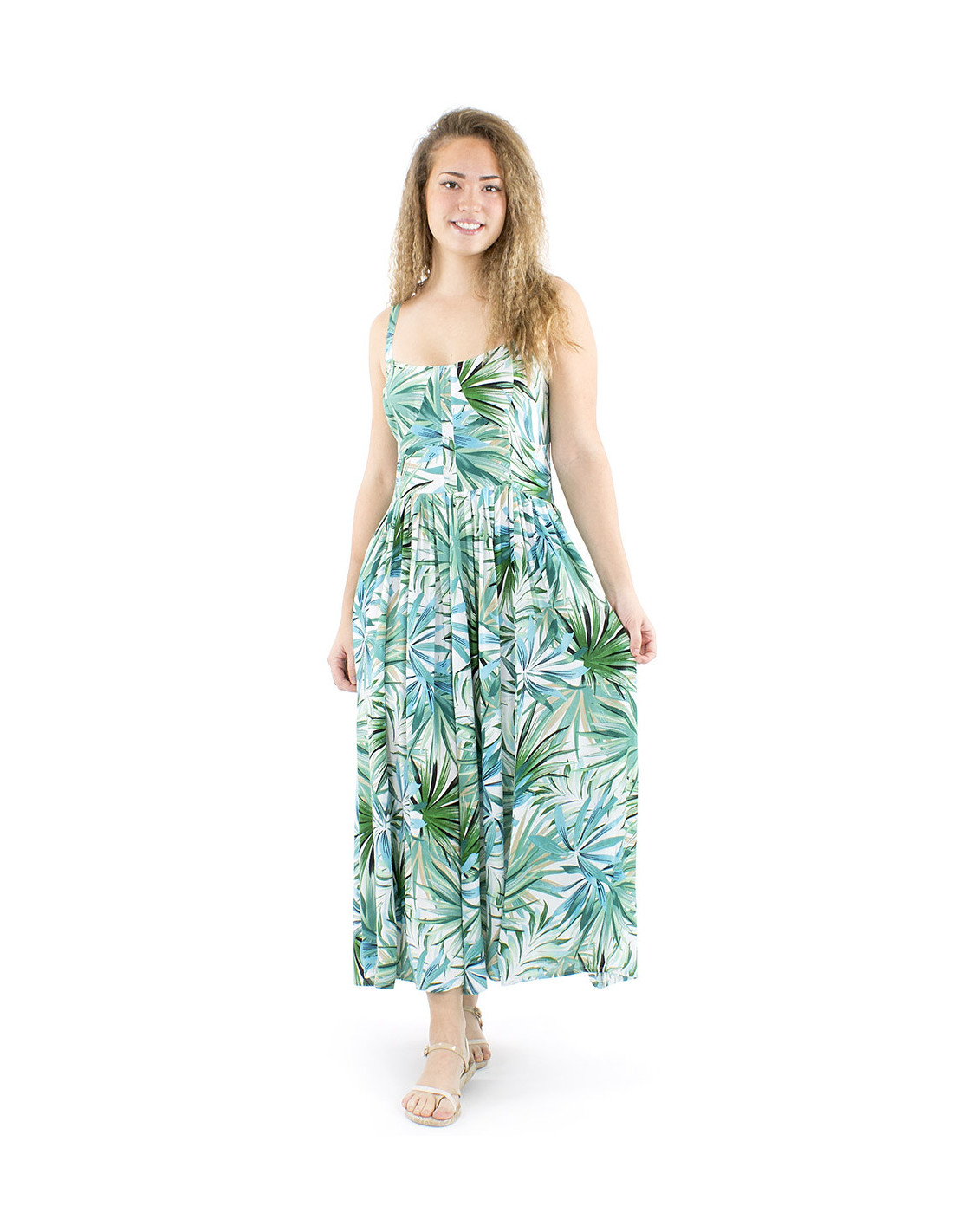 Maxi robe motif tropical et bretelles