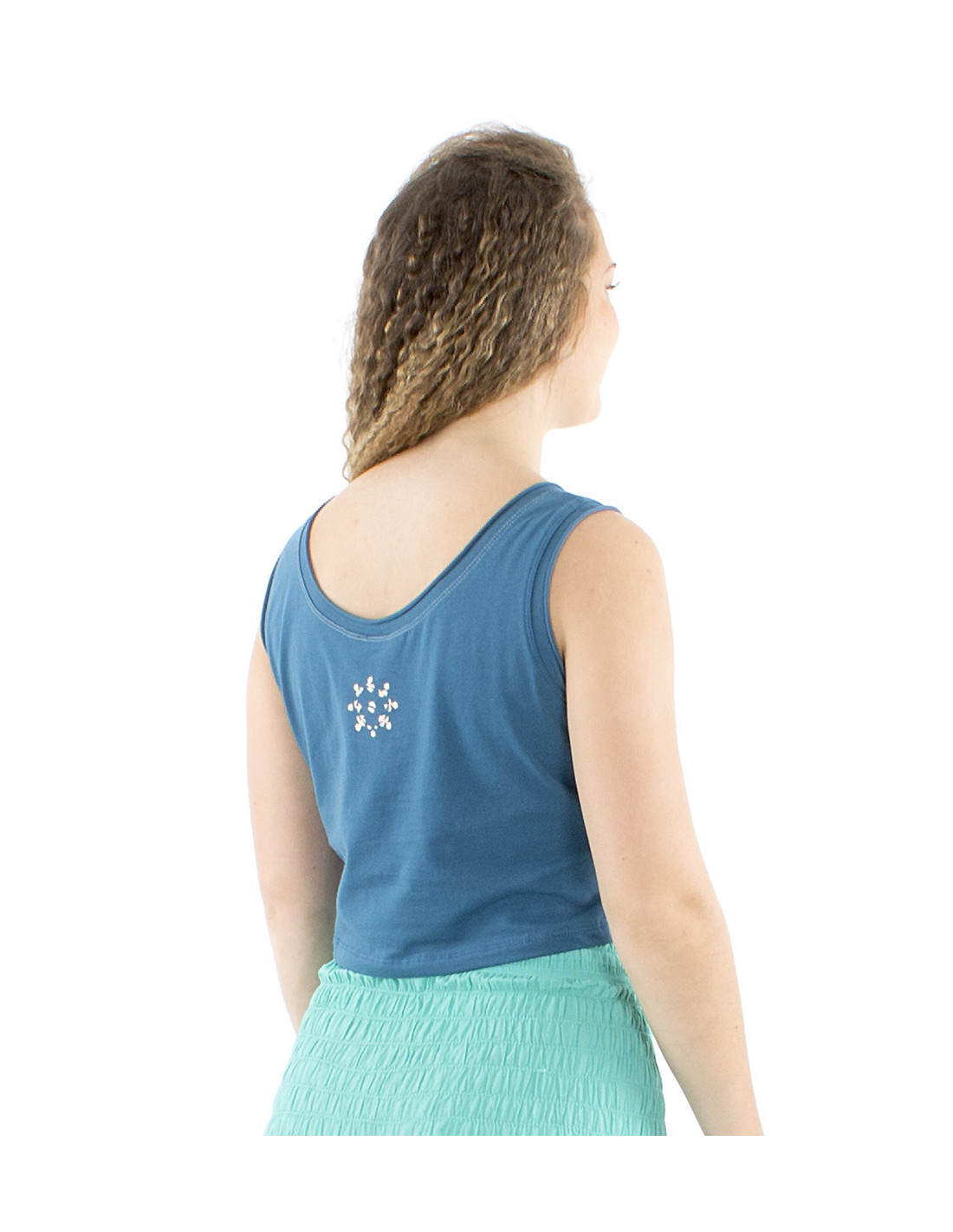 Ce débardeur crop-top large et original nous amène avec nostalgie dans le style Y2K, avec son motif floqué sur le devant et ses bretelles larges, composé à 95% de coton et 5% d'elasthanne, il est fluide, doux et légèrement extensible. Disponible en orange, vert eau, menthe ou pétrole, il existe du S au XL.