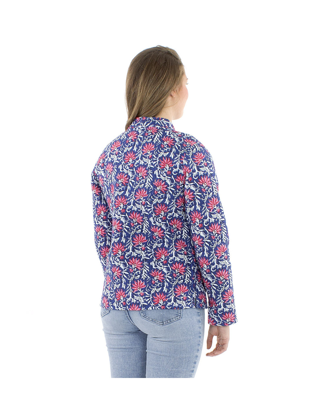 Cette veste de printemps en coton matelassé va en surprendre plus d'une : réversible et ultra confortable, elle vous offre deux styles pour le prix d'un. Un côté avec des motifs bohèmes sur fond menthe à l'eau ou un côté au motif plus ethnique, inspiré des graphismes indiens, sur fond bleu marine, libre à vous de créer autant de tenues différentes que de combinaisons possibles avec ce que vous avez dans votre dressing. Ses jolis boutons en bois de coco lui donnent un petit plus naturel et boho, et son col mao signe l'élégance et le style soigné de son design. Comportant deux poches à l'avant, intérieures ou extérieures en fonction du côté duquel vous la portez, elle est également pratique et peut tout à fait matcher avec un look casual décontracté. Pensée pour toutes les morphologies, elle est disponible du S au XXL. Longueurs : S : 62cm, M : 64cm, L : 66cm, XL : 68cm, XXL : 70cm