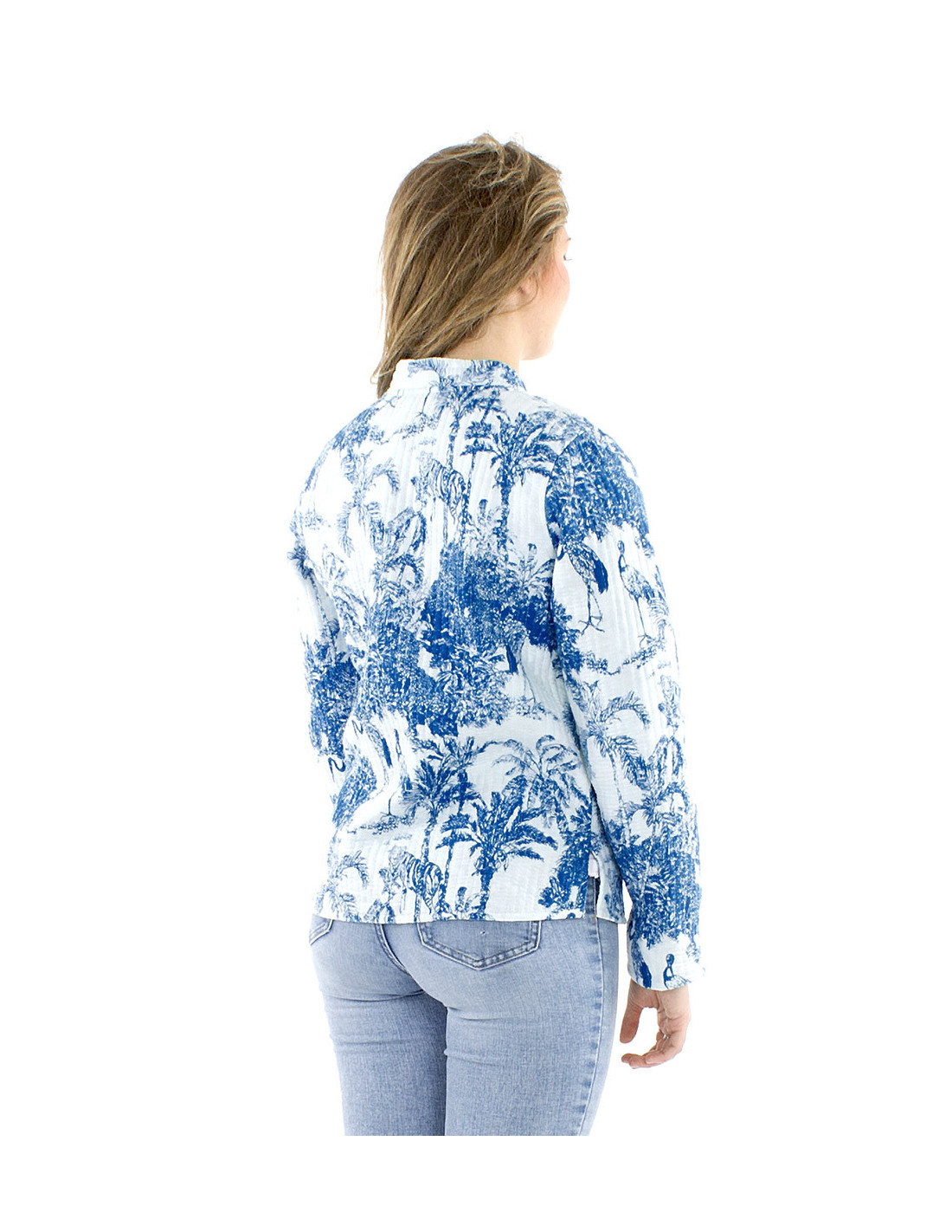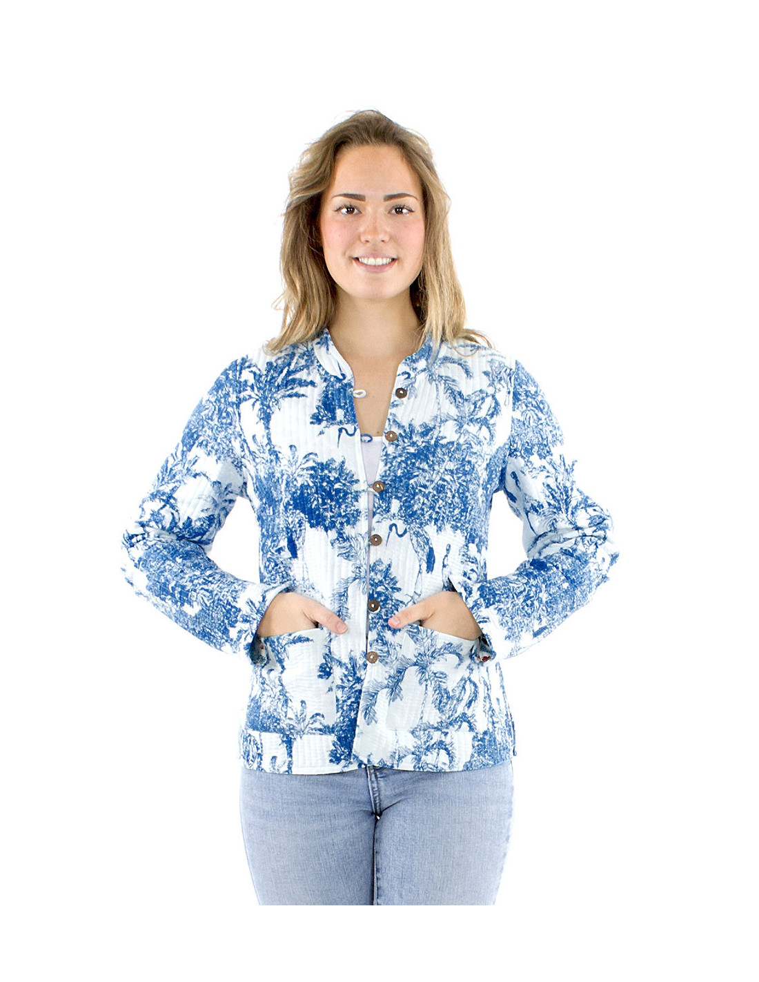Veste matelassé motif asiatique bleu et blanc