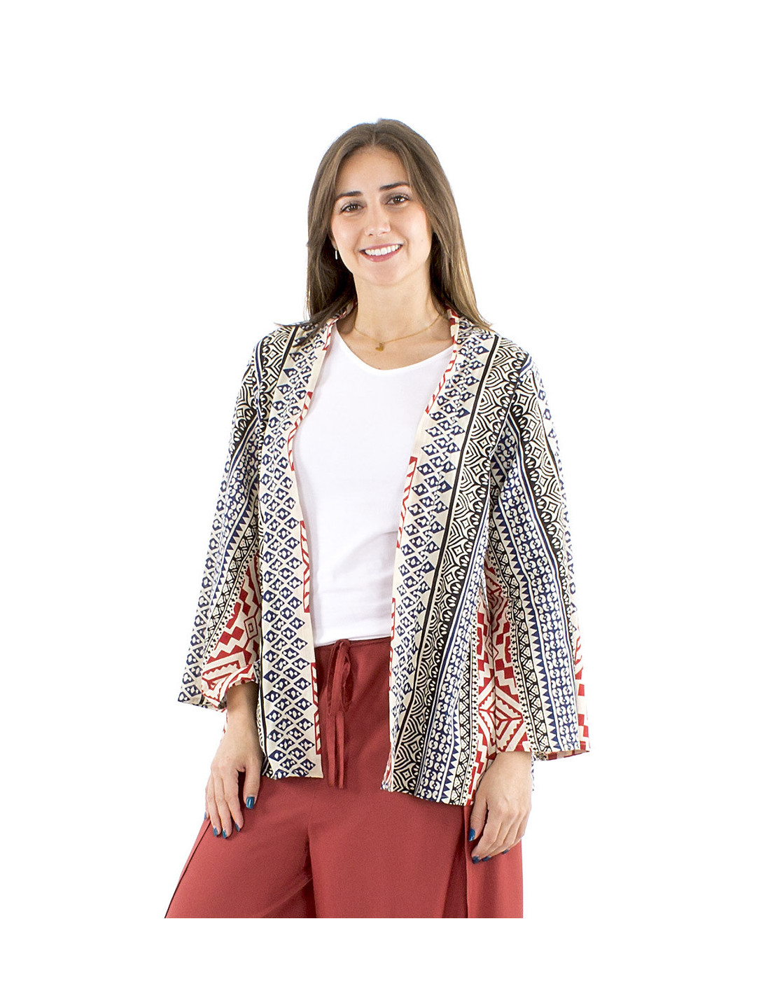 Faites-vous plaisir et mettez de la couleur dans votre garde-robe avec cette veste aux motifs ethniques inspirés de l'Inde, choisissez entre le vert pistache vif et frais ou le bleu profond, dessinée pour être confortable elle vous offre une coupe ample et des manches 3/4 suffisament larges pour ne pas brider votre liberté de mouvement. Confectionnée en 100% coton elle offre un port léger et un toucher naturel très agréable sur la peau, une matière respirante idéale pour la saison chaude. Retrouvez ces deux modèles de couleurs différentes, du S au XXL, pour convenir à tous les goûts et à toutes les silhouettes. Longueur : 66cm