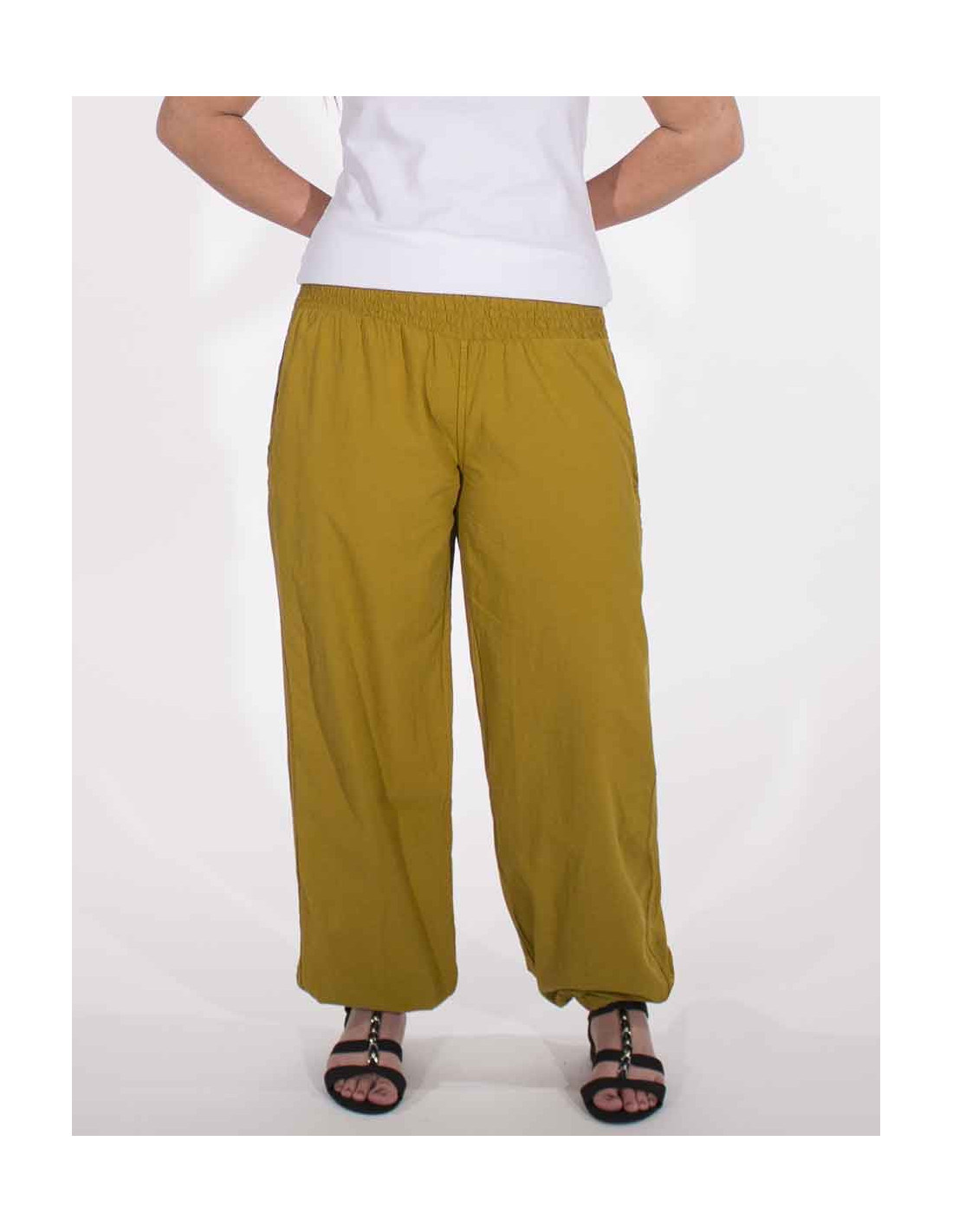 Pantalon basique en coton coupe large jaune foncé pour femme