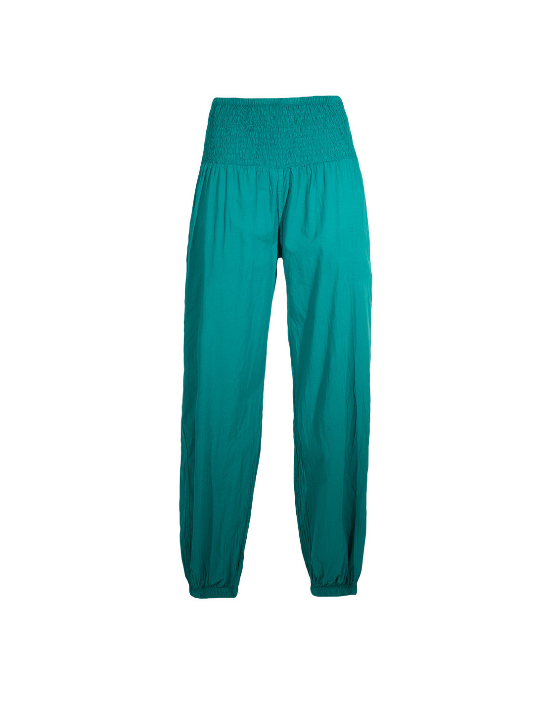 Pantalon basique en coton coupe large bleu émeraude pour femme