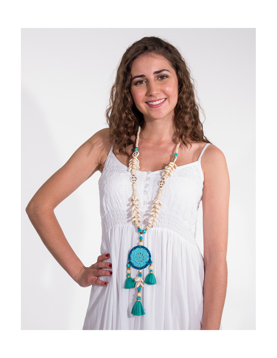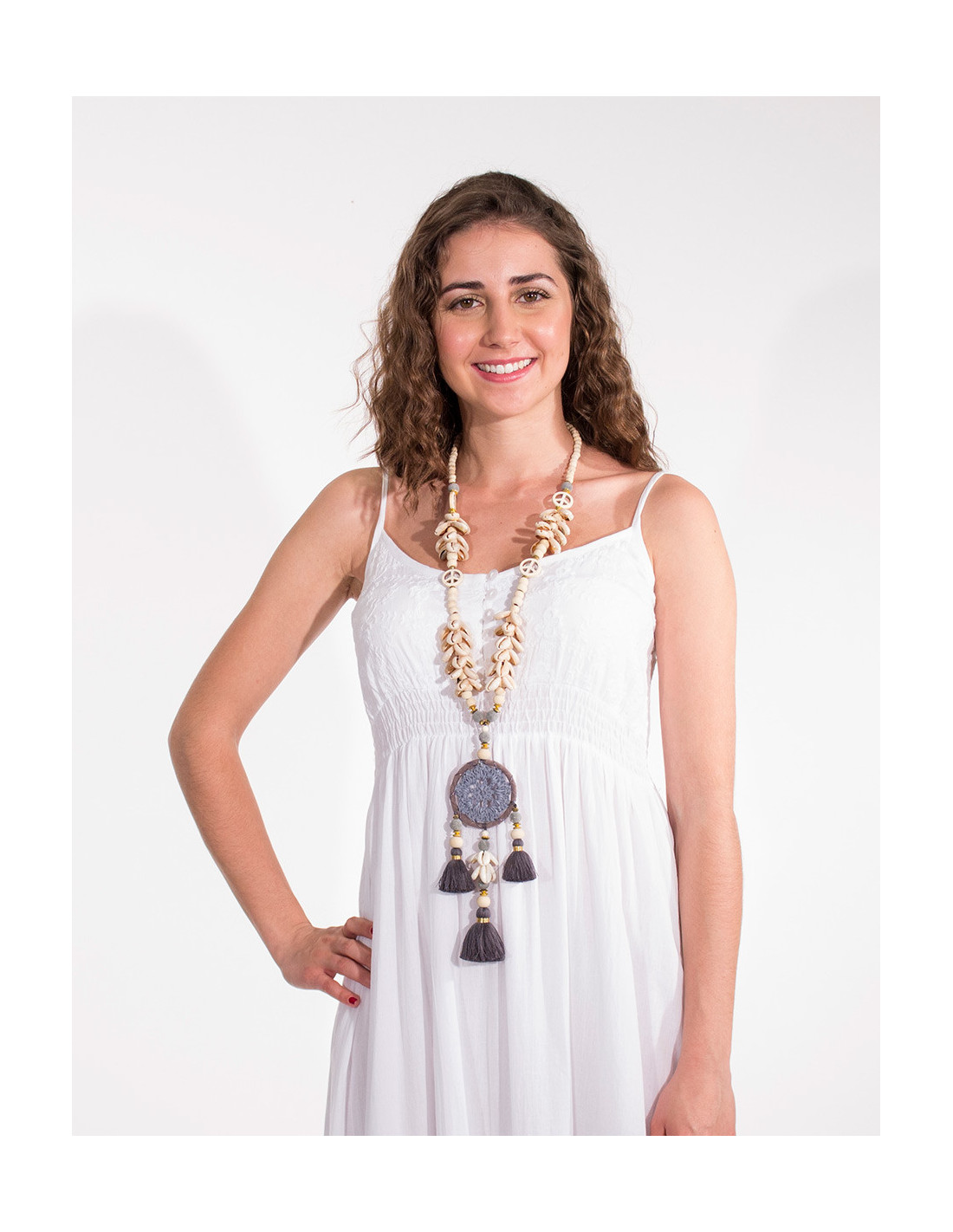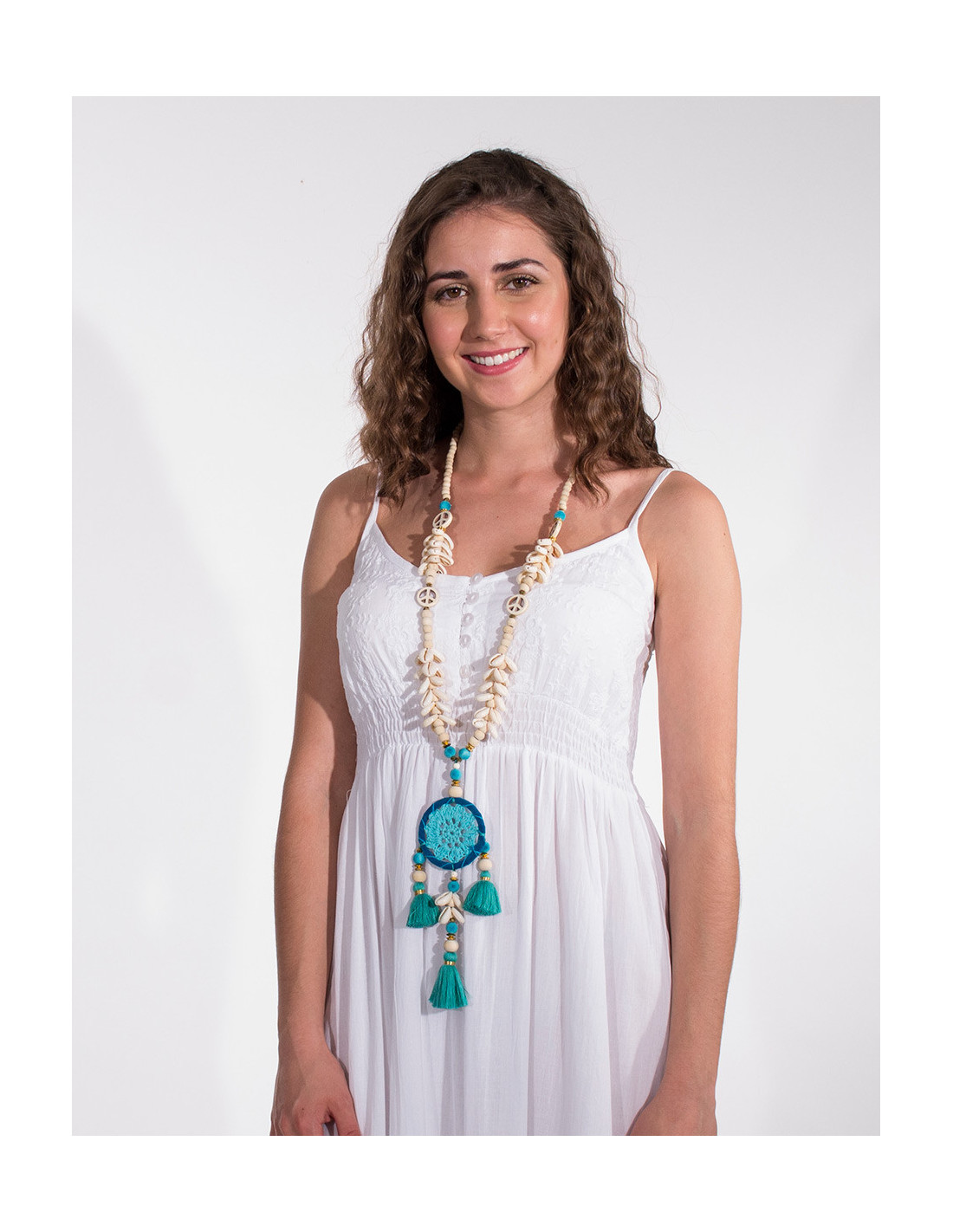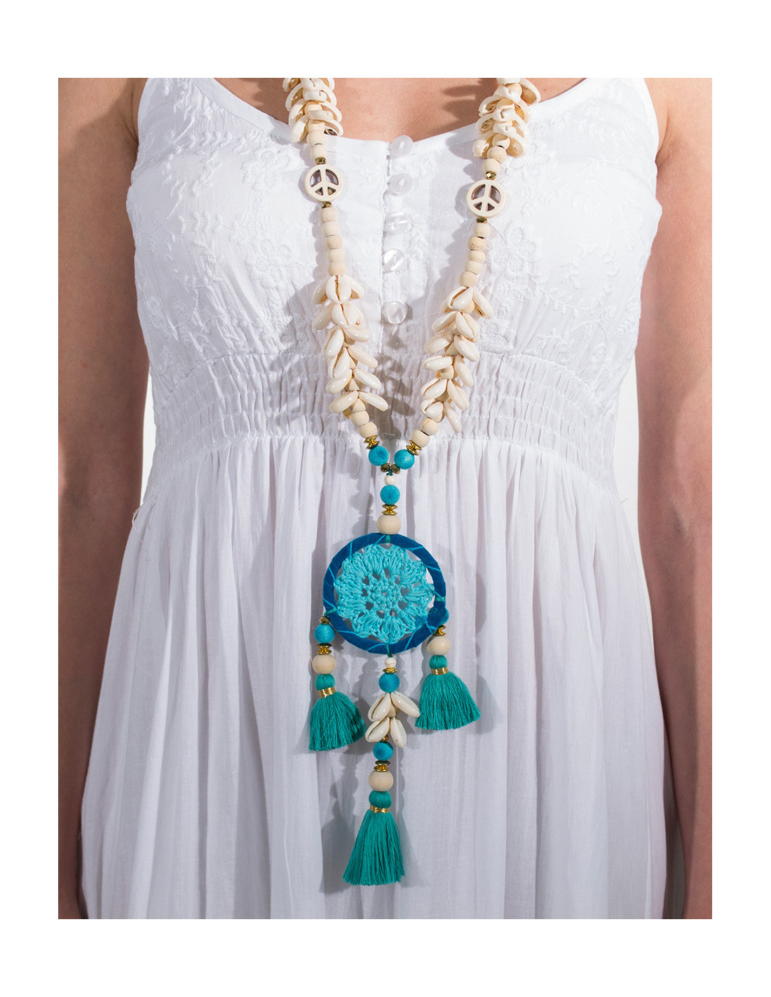 Grand collier attrape rêve et coquillage