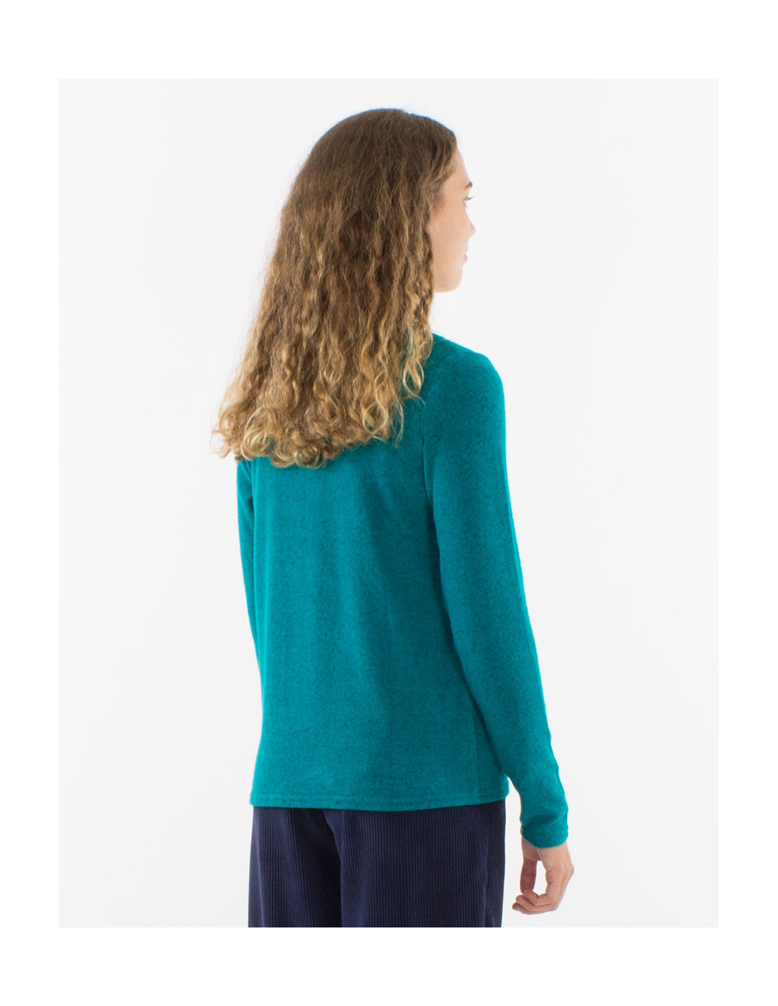 Pull femme d'hiver tout doux ample uni basique bleu émeraude